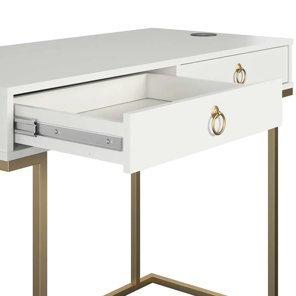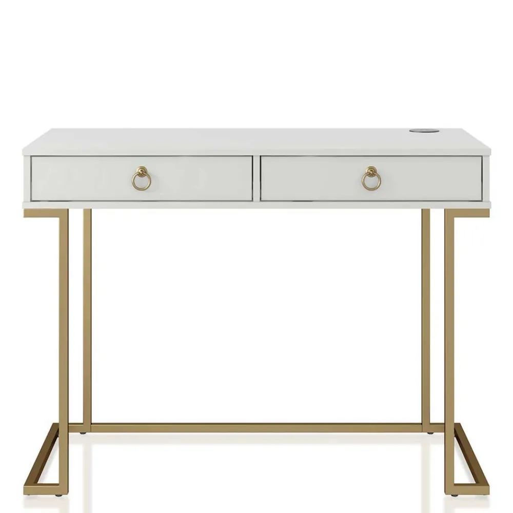 - Eleganter Schreibtisch in Weiß und Messingfarben
