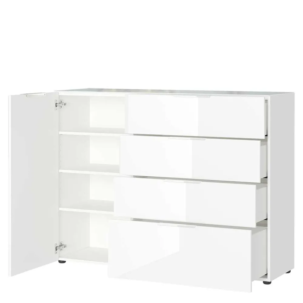 Wohnen 134x101x42 cm Kommode in Weiß mit Glas – Rufu