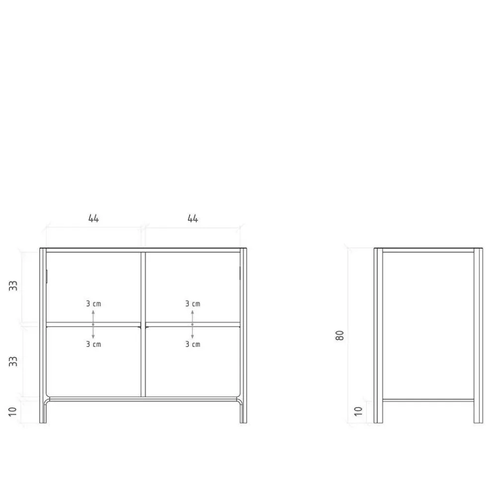Hinter den beiden Drehtüren mit Soft-Close-Funktion verbirgt sich ein großzügiger Stauraum, der mit zwei verstellbaren Einlegeböden individuell angepasst werden kann. Die Soft-Close-Technologie sorgt dafür, dass die Türen sanft und geräuschlos schließen – ein kleines Detail mit großem Komfort, das nicht nur die Lebensdauer der Kommode verlängert, sondern auch für eine angenehme Nutzung im Alltag sorgt. Die ausgefrästen Grifflöcher ermöglichen ein müheloses, griffloses Öffnen der Türen und unterstreichen das moderne Design.