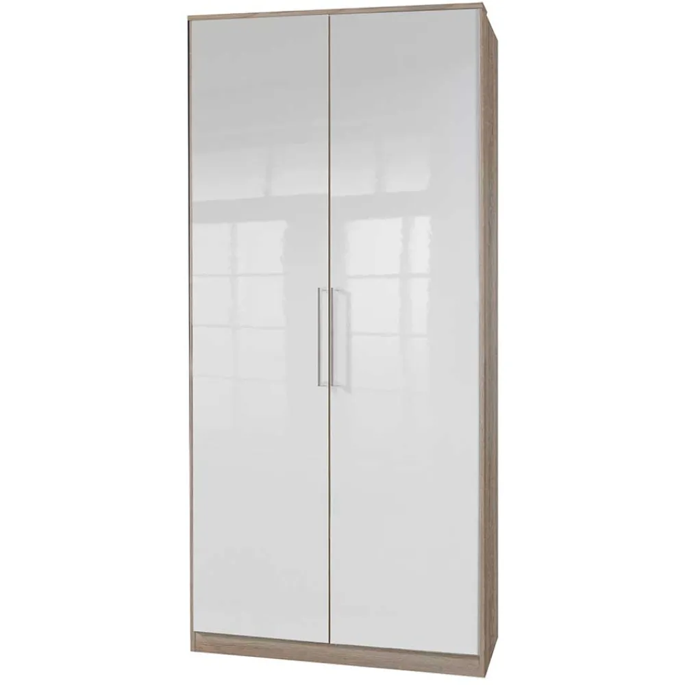 - Schlanker Kleiderschrank in Weiß und Eiche Sägerau