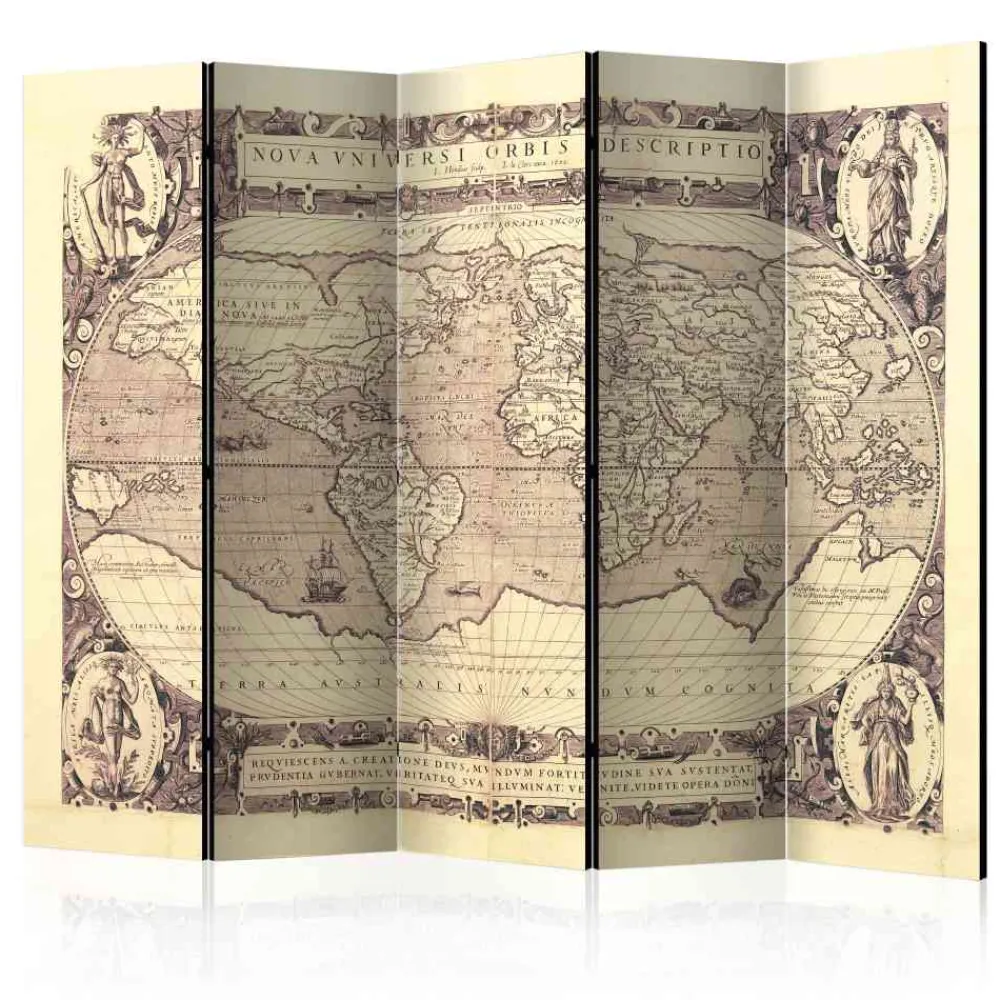- Motiv einer vergilbten Weltkarte nach historischem Vorbild