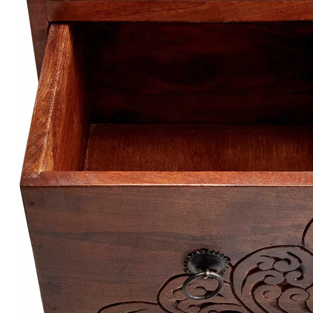 - Oberflächen lackiert, Schubladenfronten teils beschichtet, teils beschnitzt