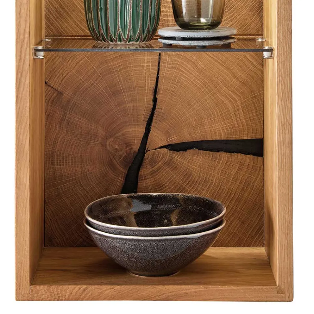 Vollständig aus massiver Wildeiche gefertigt bietet das Wandregal „Acapella“ nicht nur eine außergewöhnliche Robustheit, sondern auch eine warme, einladende Optik. Wildeiche ist bekannt für ihre Langlebigkeit und Widerstandsfähigkeit gegen Abnutzung, was dieses Möbelstück zu einer Investition macht, die Generationen überdauert. Die natürliche Maserung des Holzes verleiht jedem Exemplar ein unverwechselbares Erscheinungsbild – Ihr neues Regal ist so einzigartig wie Sie.
