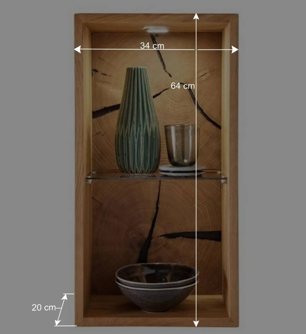 Mit seinen kompakten Maßen (34 cm Breit, 64 cm Hoch, 20 cm Tief) und einem schlichten Glasboden ausgestattet, ist das „Acapella“ Regal ideal für die Nutzung in verschiedensten Räumen und Einstellungen. Sie können zwischen der Standardausführung und einer Variante mit integrierter LED-Beleuchtung wählen. Die LED-Option verfügt über einen Touchsensor, der nicht nur bequem ist, sondern auch eine effiziente Energieklasse garantiert.