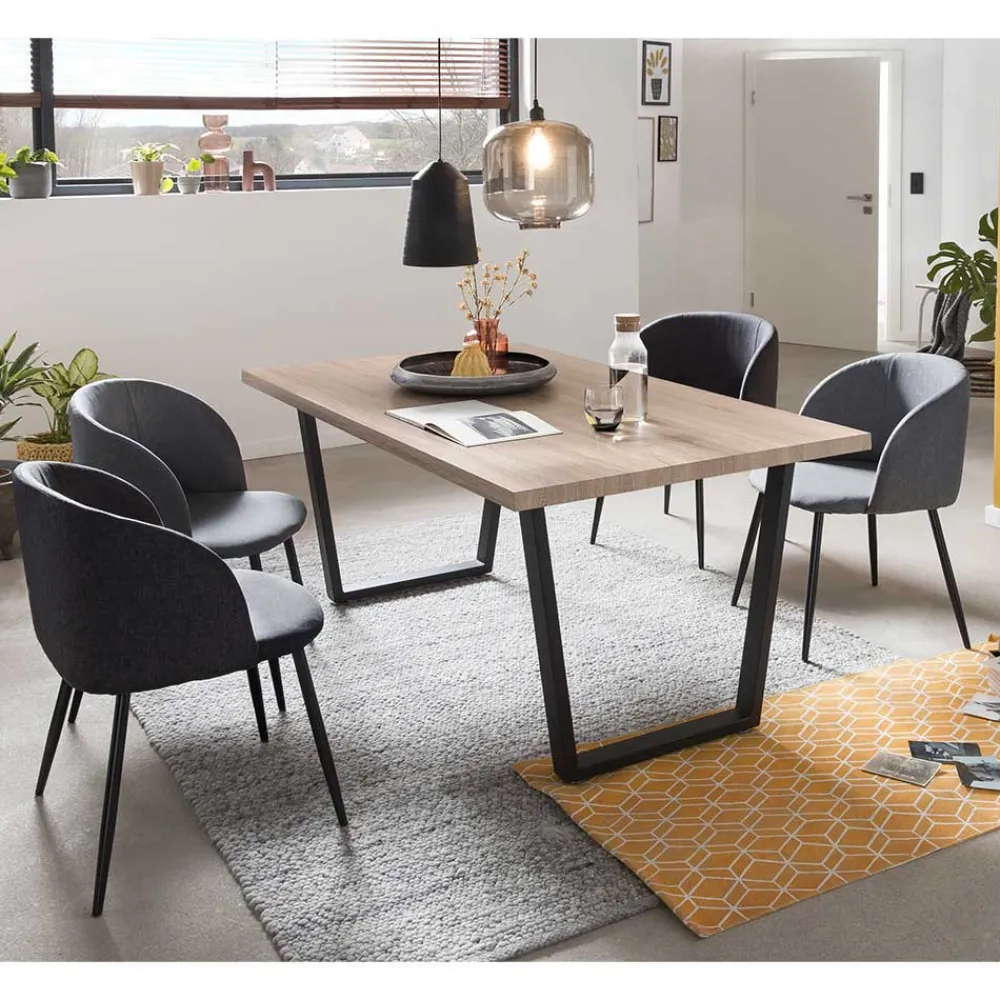 - Ansprechende Essgruppe in Sonoma Eiche, Hell- und Dunkelgrau sowie Schwarz