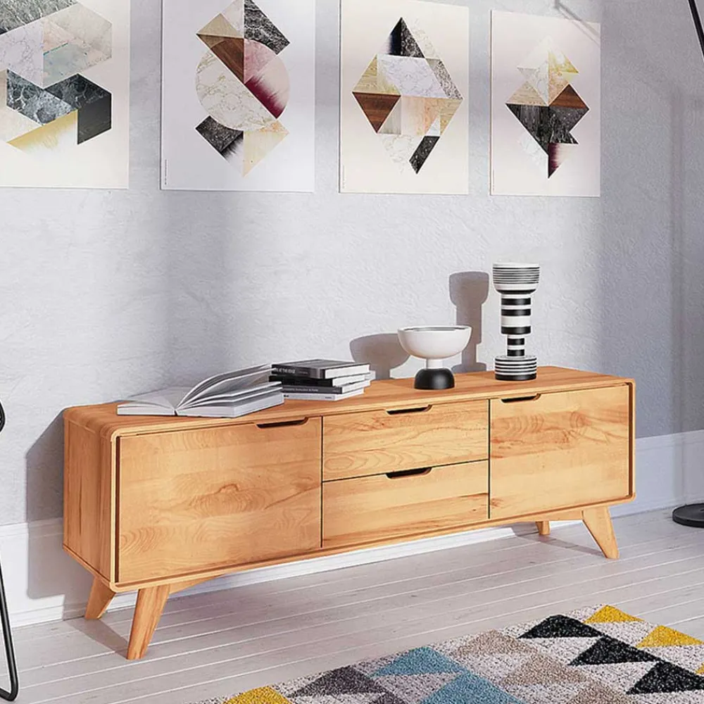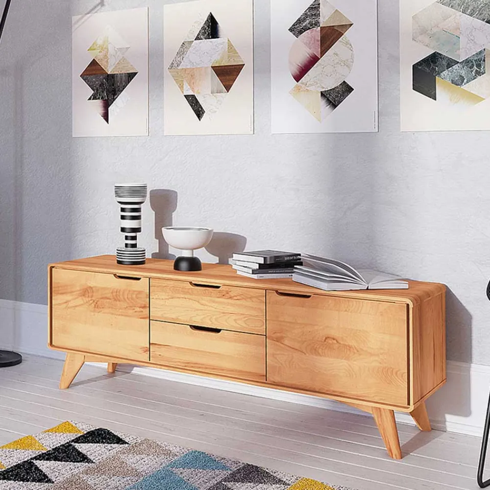 Die Kernbuche zeichnet sich durch ihre außergewöhnliche Härte und Robustheit aus, welche diesem Lowboard Stabilität und eine lange Lebensdauer verleihen. Die Oberfläche des Lowboards ist natürlich geölt, was nicht nur einen sanften, natürlichen Glanz erzeugt, sondern auch das Holz schützt und dessen Atmungsaktivität erhält. Die erstklassige Stabverleimung sorgt zudem für zusätzliche Stabilität und Langlebigkeit.