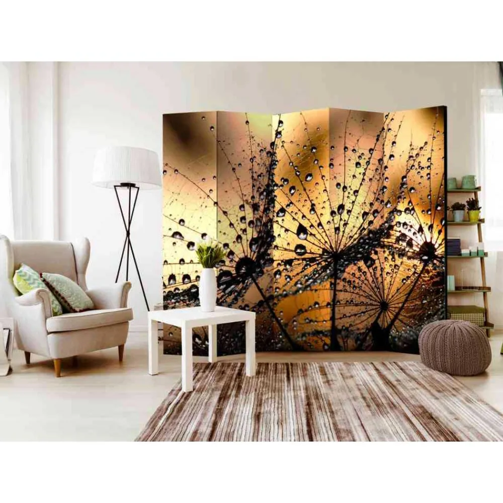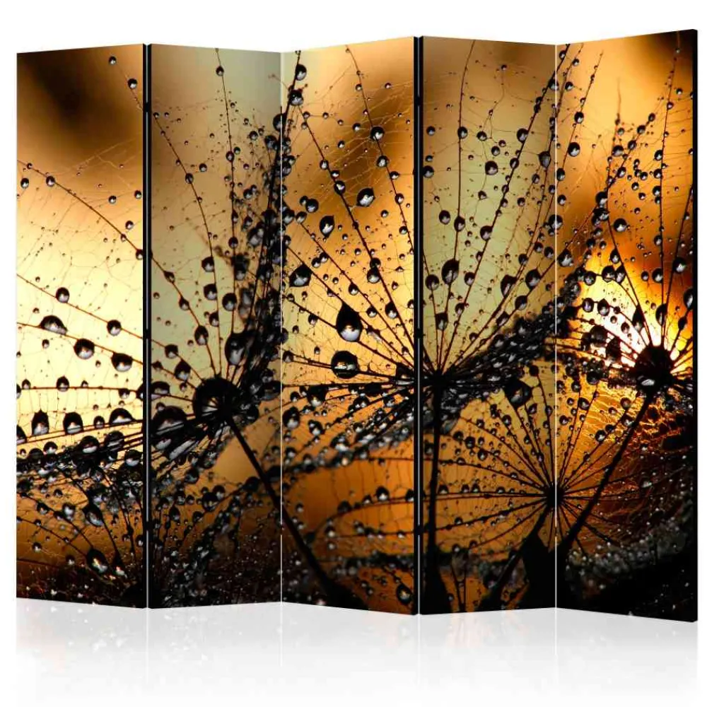 - Zarte Pusteblume mit Tautropfen im Morgenrot