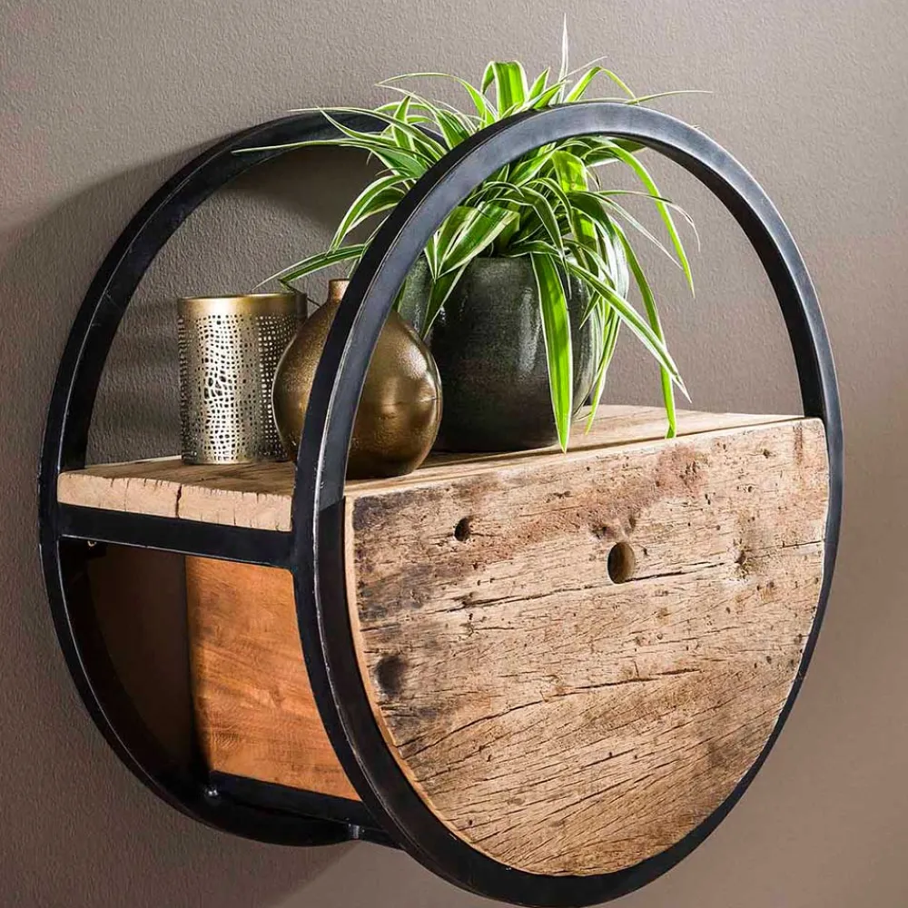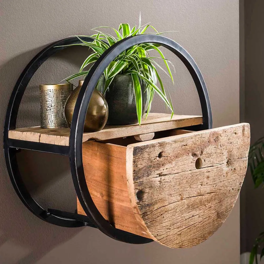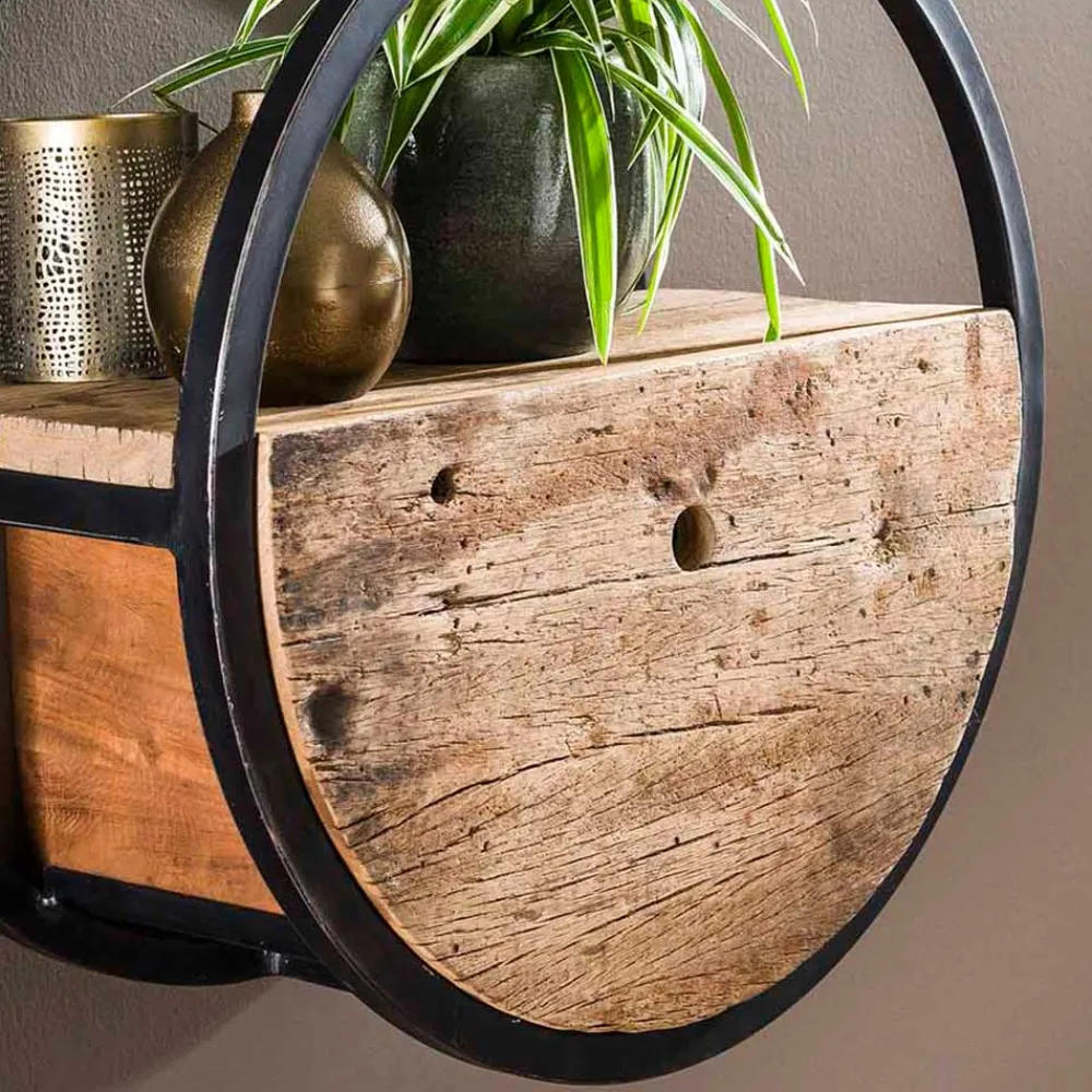 - Kunstvolles Hängeregal in Holz Naturfarben und Schwarz Vintage