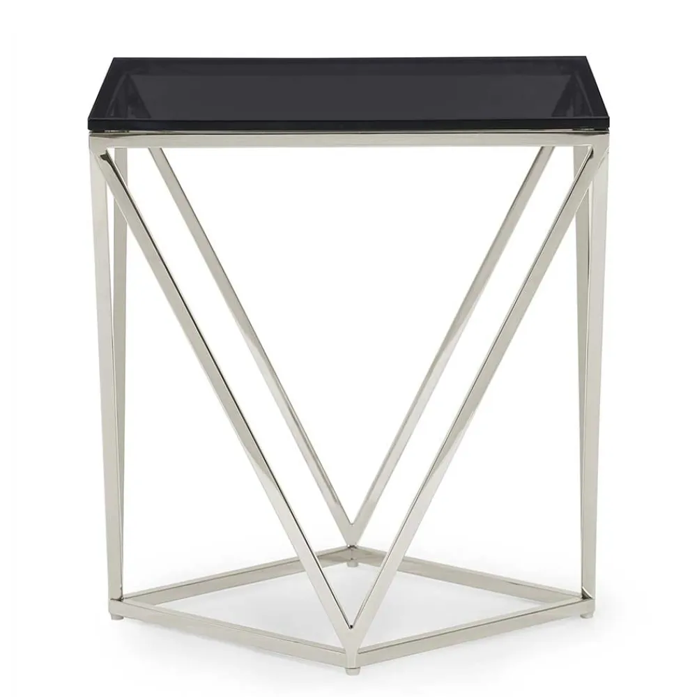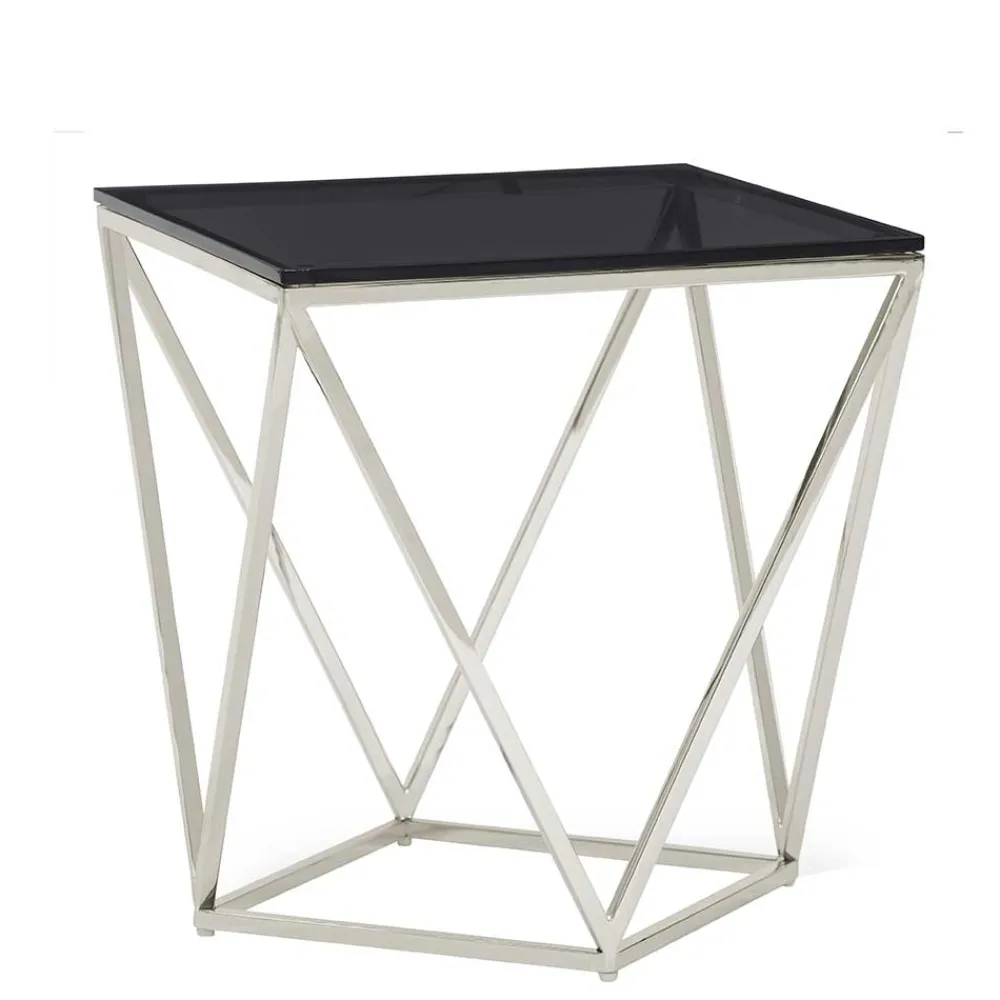- Extravaganter Beistelltisch in Rauchgrau und Silberfarben