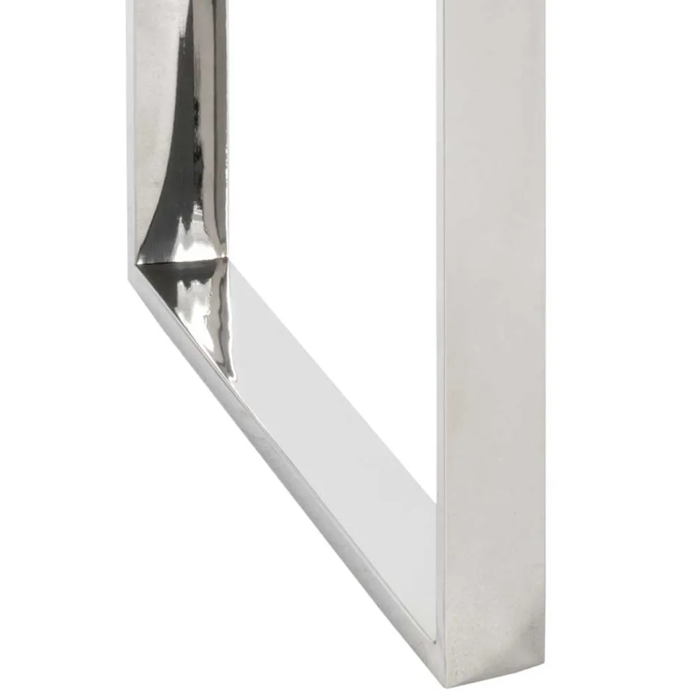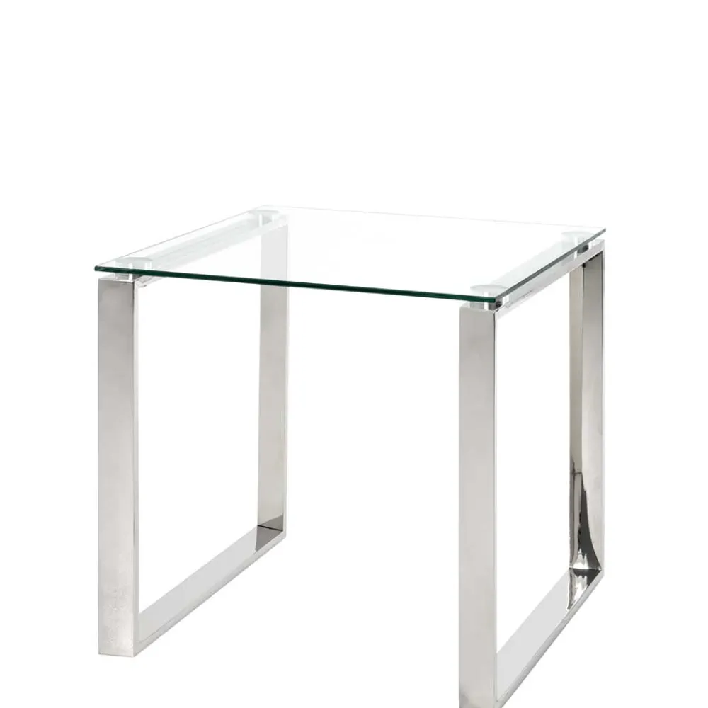 Tonico lebt von seinem klaren, puristischen Design. Die Kombination aus glänzend poliertem Edelstahlgestell und einer fein gearbeiteten Glasplatte wirkt leicht, fast schwebend – und setzt dennoch ein kraftvolles Statement. Die quadratische Form mit 55 cm Kantenlänge verleiht ihm Präsenz, ohne Raum zu dominieren. Eckige, sauber verarbeitete Kanten runden das Design harmonisch ab und sorgen für eine moderne, geradlinige Optik, die in jede Einrichtung passt.