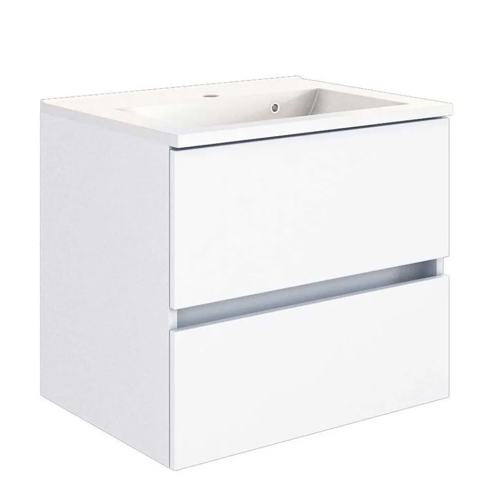 Mit Maßen von 60 cm Breite, 56 cm Höhe und 47 cm Tiefe bietet der Hänge-Waschtisch „Vandan“ erstaunlich viel Stauraum – ideal für kleinere bis mittlere Badezimmer. Zwei großzügige Schubladen mit Metallauszügen und moderner Soft-Close-Funktion gleiten leise und sanft zu und bieten ausreichend Platz für Pflegeprodukte, Handtücher und Kosmetika. Die eckigen Korpuskanten verleihen dem Möbelstück nicht nur optische Klarheit, sondern auch zusätzliche Stabilität. Ein durchdachtes Detail: Die grifflosen Schubladen lassen sich ganz einfach unterhalb fassen – so bleibt das klare, puristische Design vollständig erhalten.