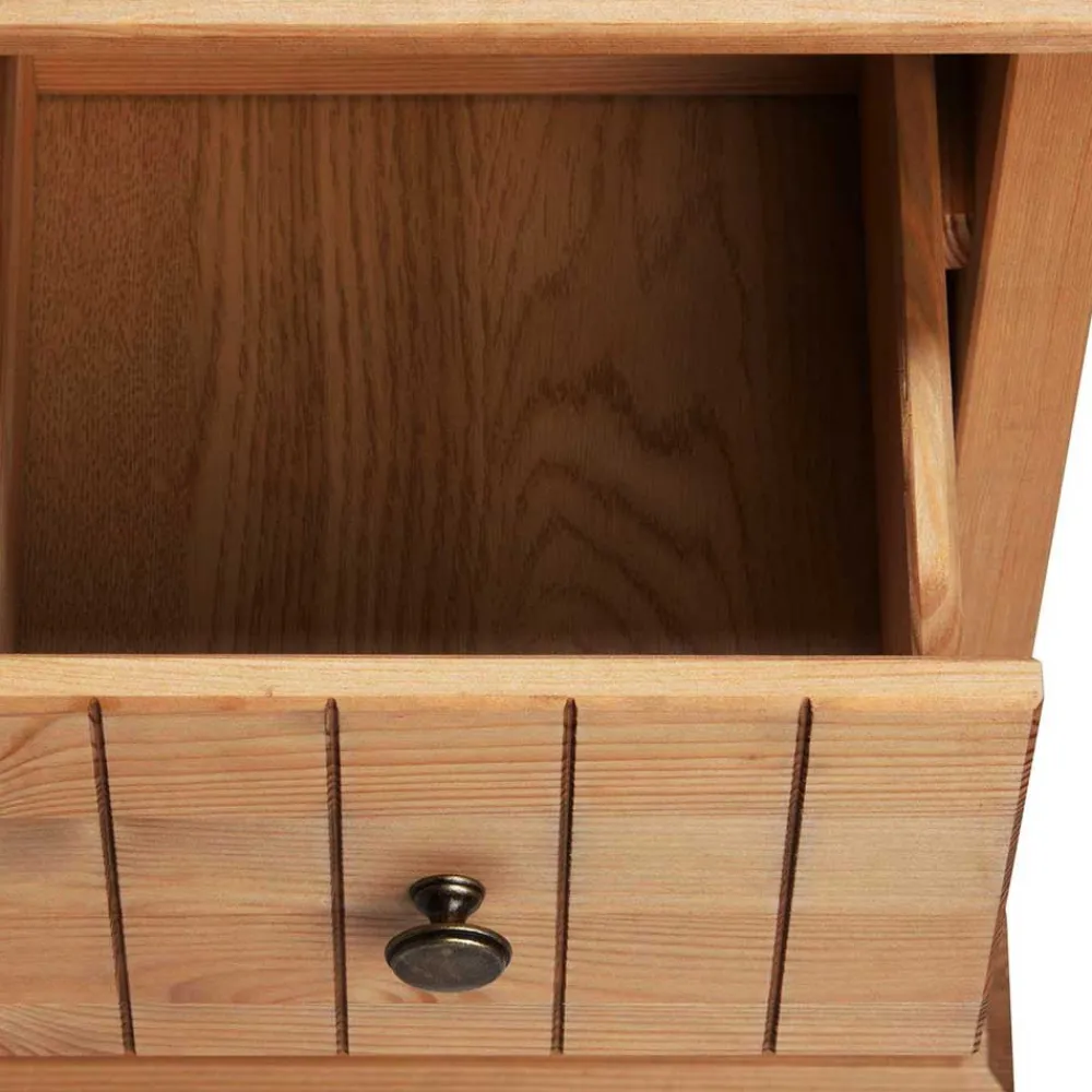 Gefertigt aus massivem Kiefernholz, steht Akzinad für authentische Handwerkskunst, die man nicht nur sieht, sondern auch spürt. Die geölte Oberfläche unterstreicht die natürliche Maserung des Holzes, macht die Struktur lebendig und schafft eine wunderbar warme Haptik. Jeder Ast, jede kleine Unebenheit erzählt eine Geschichte und verleiht Ihrer Kommode einen individuellen Charakter – wie ein liebevoll gestaltetes Unikat. Die rustikale Qualität mit leichten Wuchsrissen und Astlöchern macht dieses Möbelstück nicht nur zum Hingucker, sondern zum Erlebnis.
