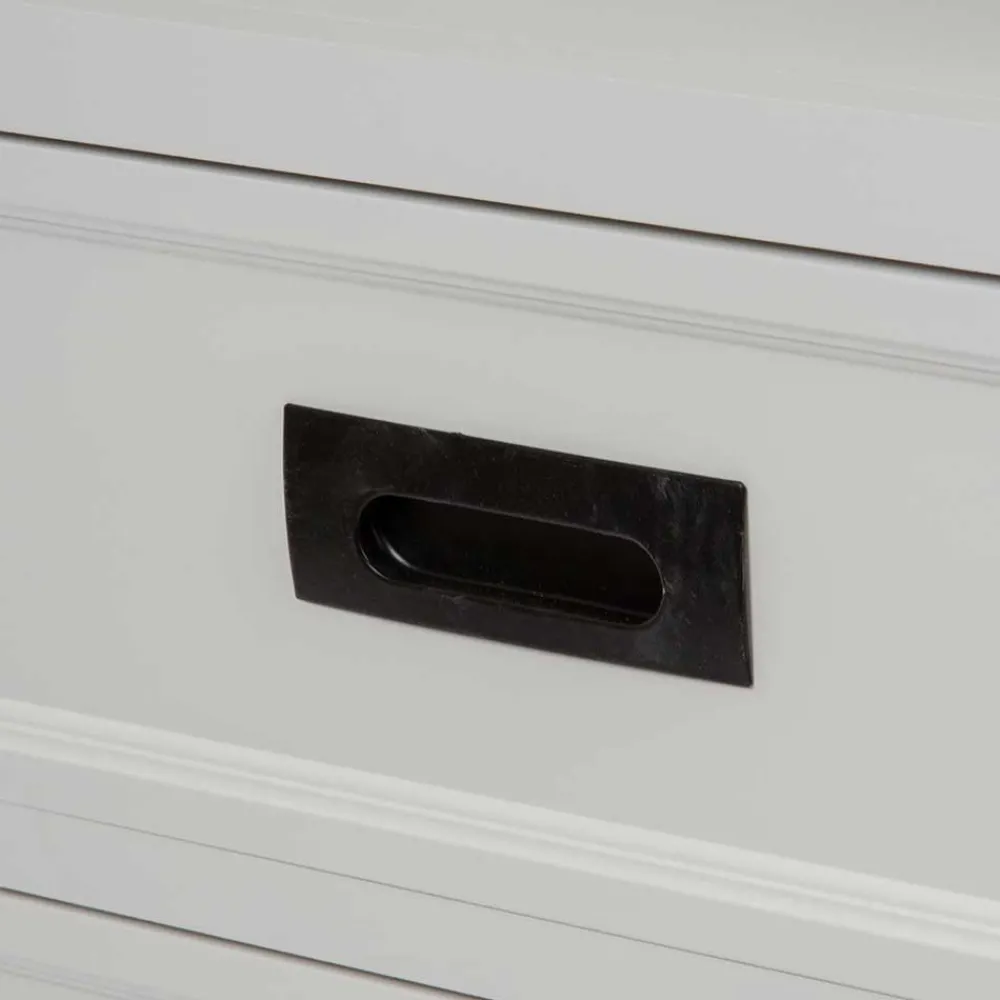 Drei geräumige Schubladen mit leichtgängigen Holzschienen und formschönen schwarzen Griffmulden aus Kunststoff bieten zusätzlichen Platz für Dinge, die Sie stilvoll verstauen möchten. Das geschlossene Sockelgestell sorgt nicht nur für eine harmonische Gesamtoptik, sondern gibt dem Möbel zusätzliche Standfestigkeit und Stabilität. Für mehr Sicherheit empfehlen wir eine Kippsicherung – besonders in Haushalten mit Kindern.