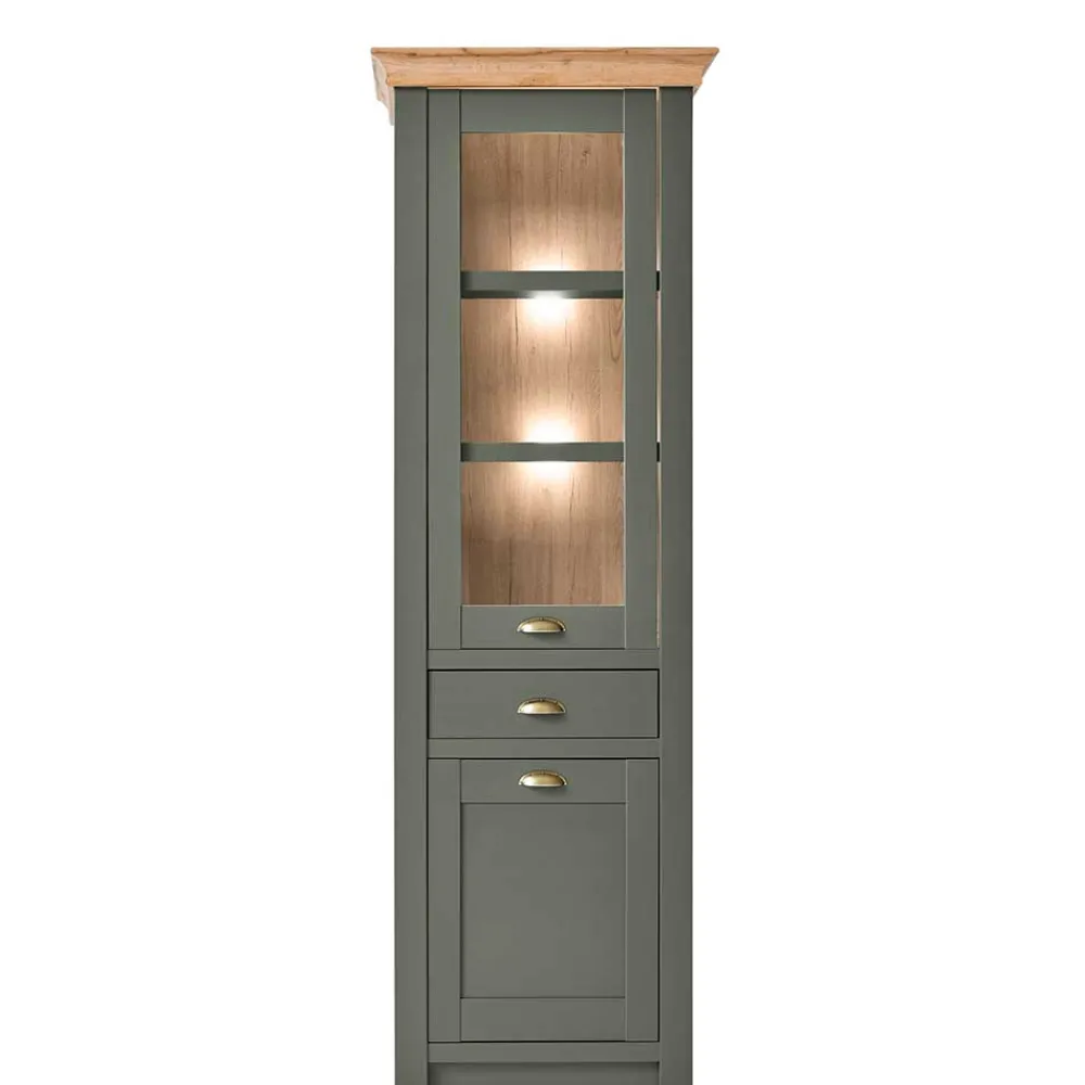 Wohnen 68x207x45 Landhaus Vitrine in Graugrün – Eylan