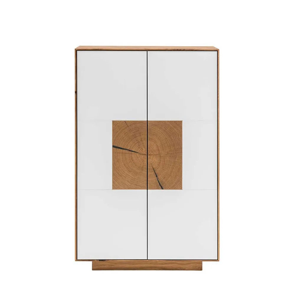 Dieser Schuhschrank wird in Deutschland gefertigt und besticht durch seine herausragende Qualität. Hergestellt aus massivem Wildeicheholz, MDF und Glas, vereint er Robustheit mit stilvoller Eleganz. Bewusst eingearbeitete Wuchsmerkmale wie leichte Risse oder Astlöcher verleihen jedem Möbelstück einen einzigartigen Charakter. Die gebürsteten und geölten Holzoberflächen betonen zusätzlich die lebhafte Maserung und unterstreichen die hochwertige Verarbeitung.