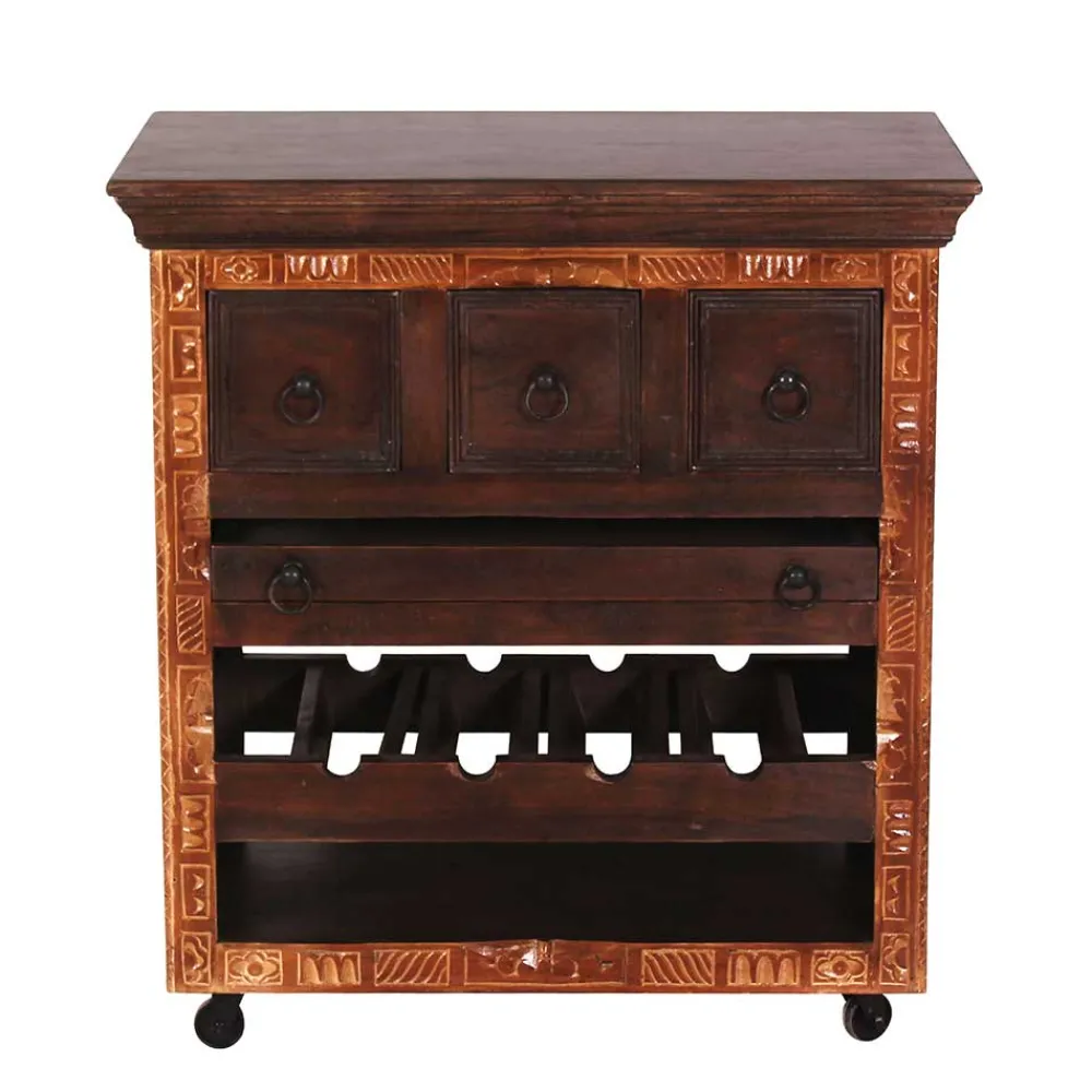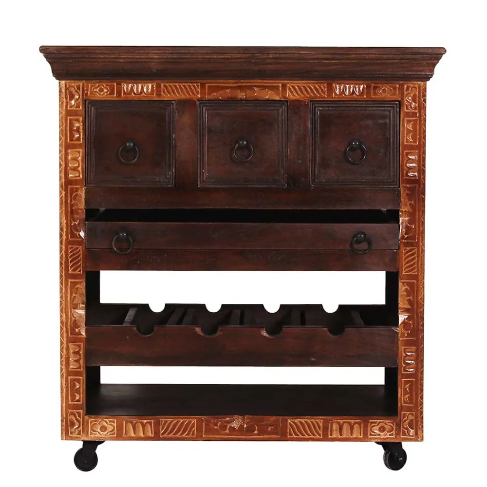 Entführen Sie Ihre Einrichtung auf eine Reise in die fernen Ecken Indiens. Unser Küchenwagen „Solapura“ bringt den verzaubernden Charme des indischen Kolonialstils in Ihr Zuhause. Inspiriert von der kulturellen Verschmelzung britischer und indischer Ästhetik, präsentiert er sich mit klassischen Formen, die eine jahrhundertealte Geschichte erzählen.