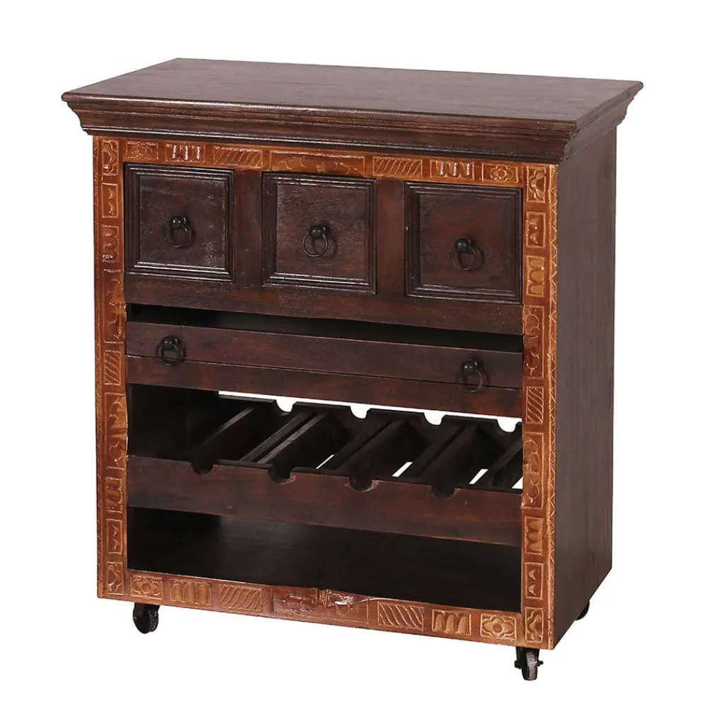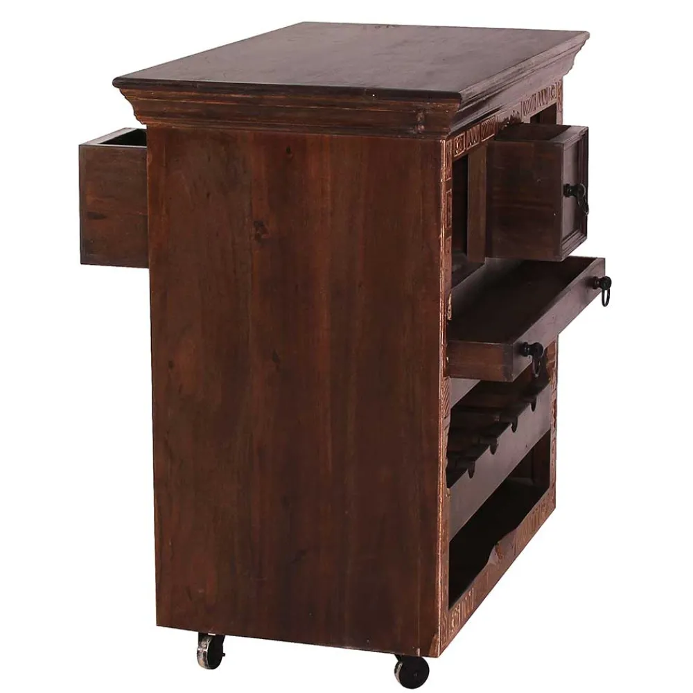 - Praktischer Küchenwagen in Teak antik Dunkelbraun