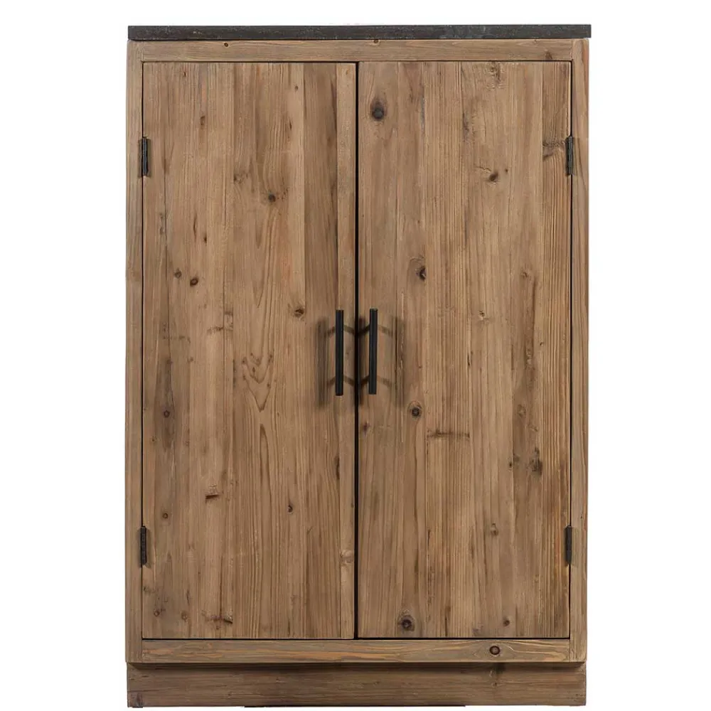 Der Küchenschrank „Macsena“ wurde mit höchster Sorgfalt und aus erstklassigen Materialien gefertigt. Das massive Kiefernholz und die Steinakzente verleihen ihm eine robuste und natürliche Ausstrahlung. Die Holzoberflächen sind mit einem einzigartigen Antik-Finish behandelt, welches ihnen einen rustikalen Look verleiht. Jeder einzelne Artikel ist ein Unikat, daher sind Abweichungen in Form und Farbe unvermeidbar und machen Ihr Möbelstück zu etwas ganz Besonderem.