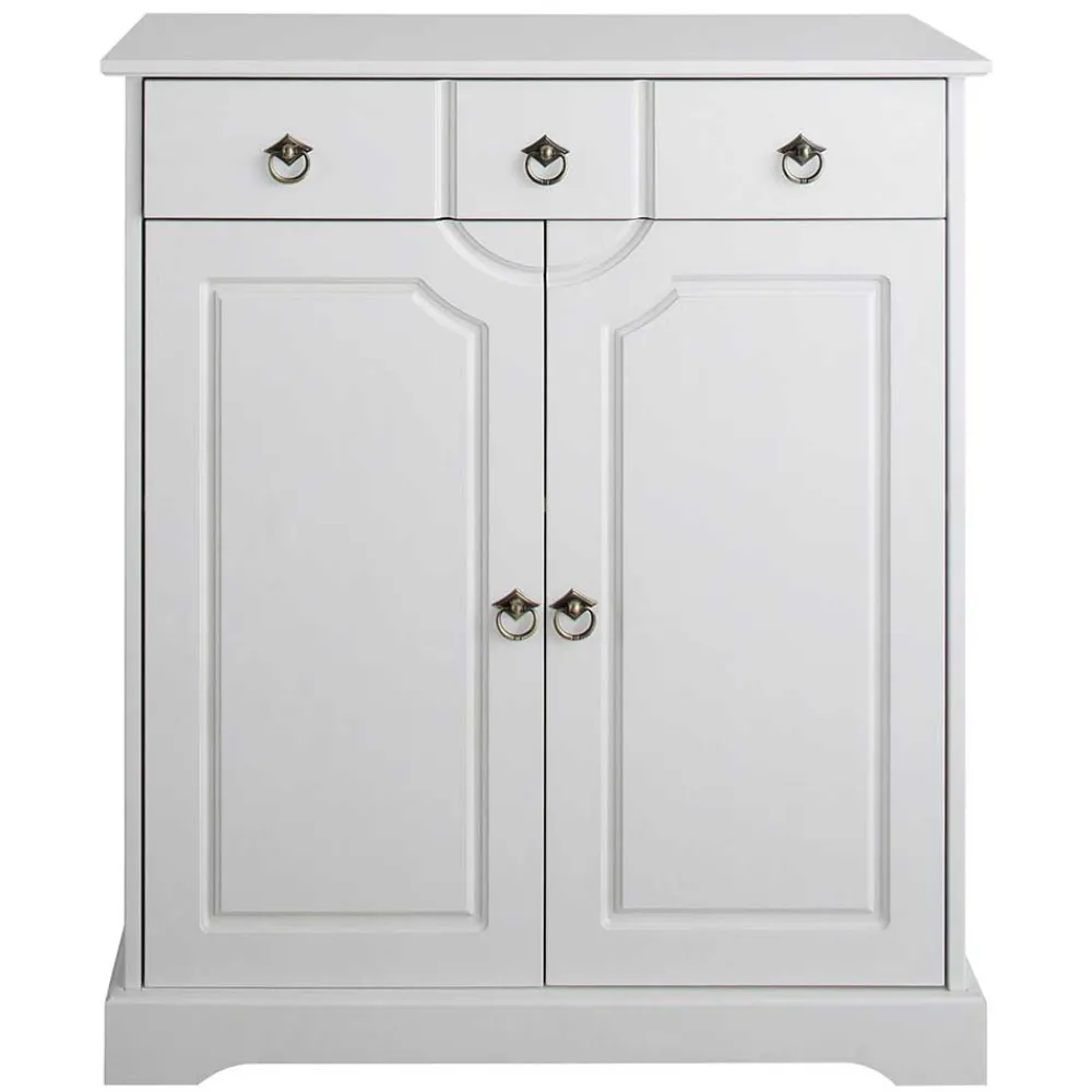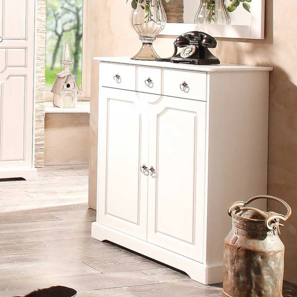 Mit dem Vertiko „Vesrav“ holen Sie sich den unverwechselbaren Charme des Landhausstils direkt in Ihr Zuhause. Landhausstil steht für Gemütlichkeit und Natürlichkeit, wodurch jeder Raum eine warme und einladende Atmosphäre erhält. Dieses exquisite Möbelstück ist komplett aus massivem Kiefernholz gefertigt, was nicht nur für Langlebigkeit und Robustheit sorgt, sondern auch das rustikale Flair eines Landhauses versprüht. Die weiß gewachsten Oberflächen unterstreichen die hochwertige Materialqualität und sorgen für eine schicke und pflegeleichte Finish.