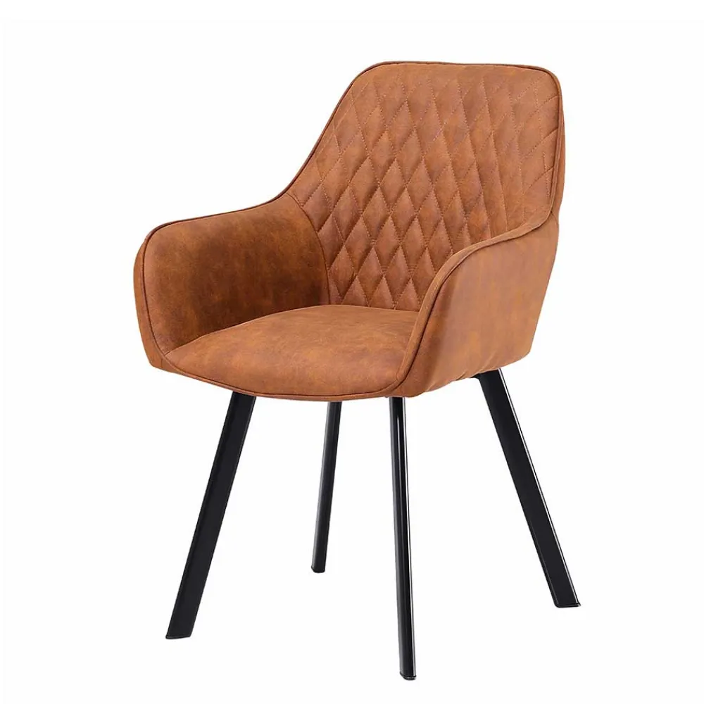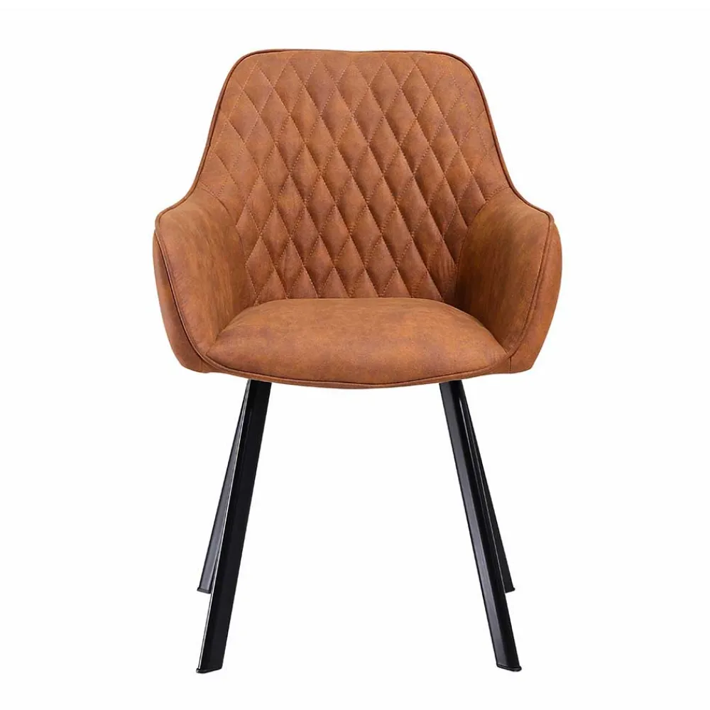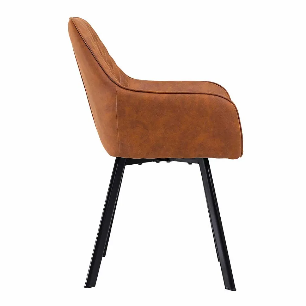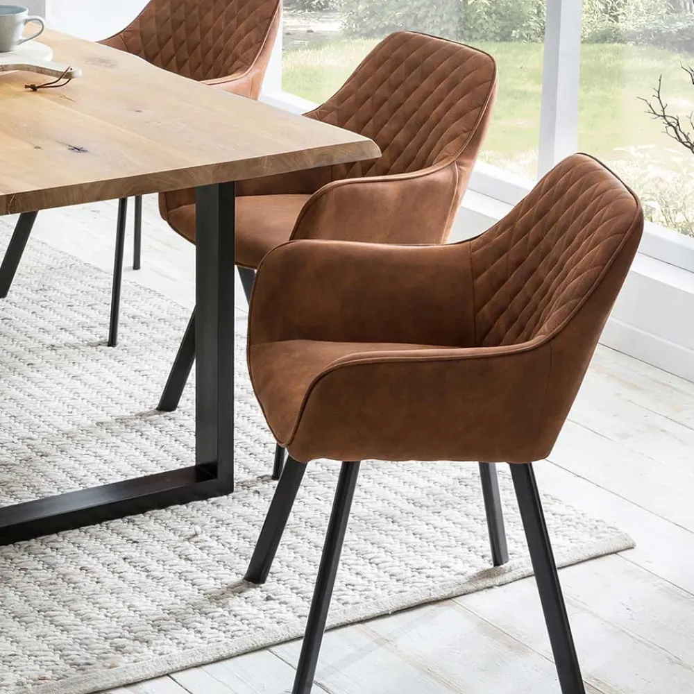 Ein stilvoller Polsterstuhl, der keine Wünsche offenlässt: Der „Dronja“ ist die perfekte Wahl für alle, die Wert auf Ästhetik, Komfort und Qualität legen. Dieser Stuhl bringt modernes Design in Ihr Zuhause und setzt in Küche oder Esszimmer elegante Akzente. Die Kombination aus cognac-braunem Bezug und dem stabilen schwarzen Edelstahlgestell verleiht jedem Raum ein gehobenes Ambiente und zeigt Stilbewusstsein.