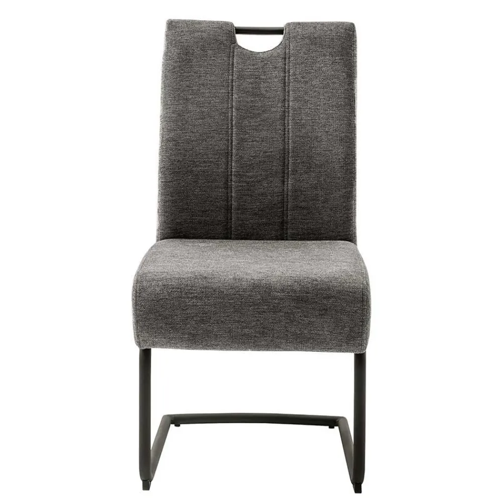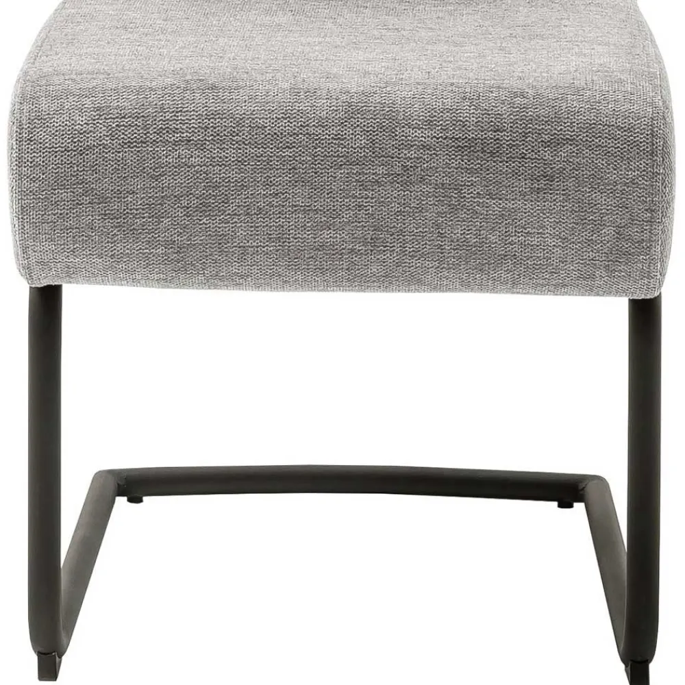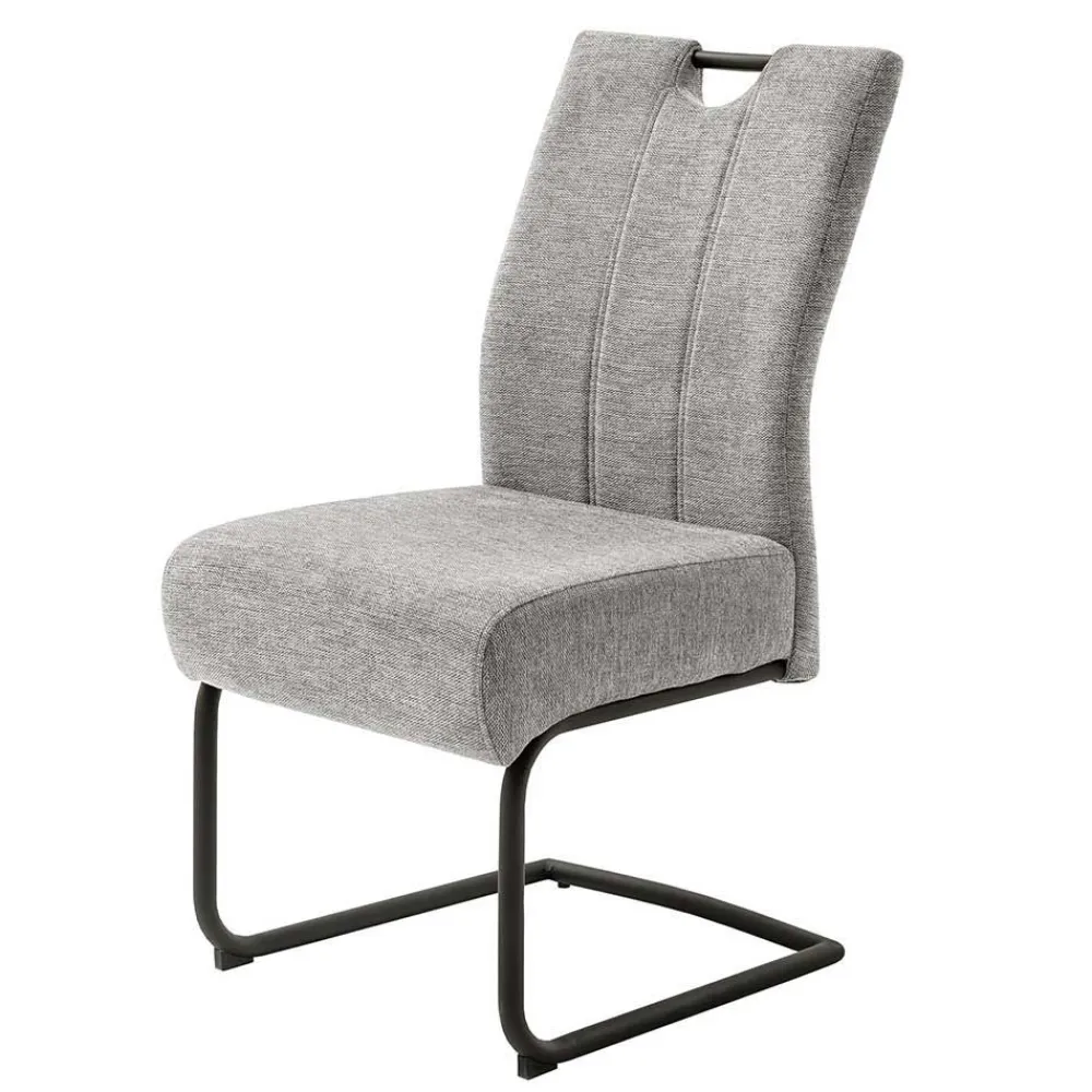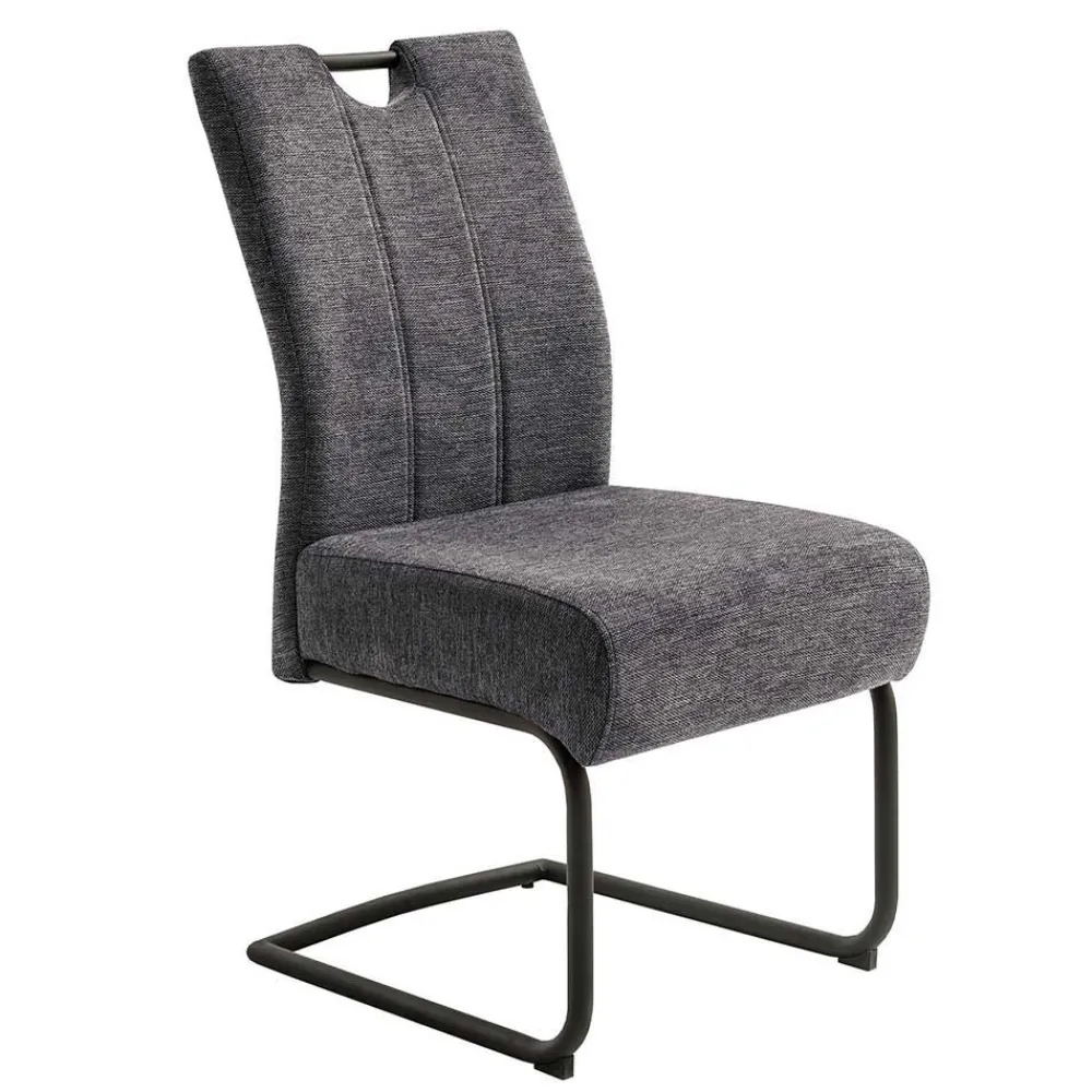 Die Schwingstühle mit ihrem Rundrohrgestell aus mattschwarz lackiertem Metall vereinen Komfort und Stabilität. Ihre hohen Rückenlehnen, veredelt durch dekorative Nähte, sorgen nicht nur für eine elegante Optik, sondern bieten auch optimalen Halt.