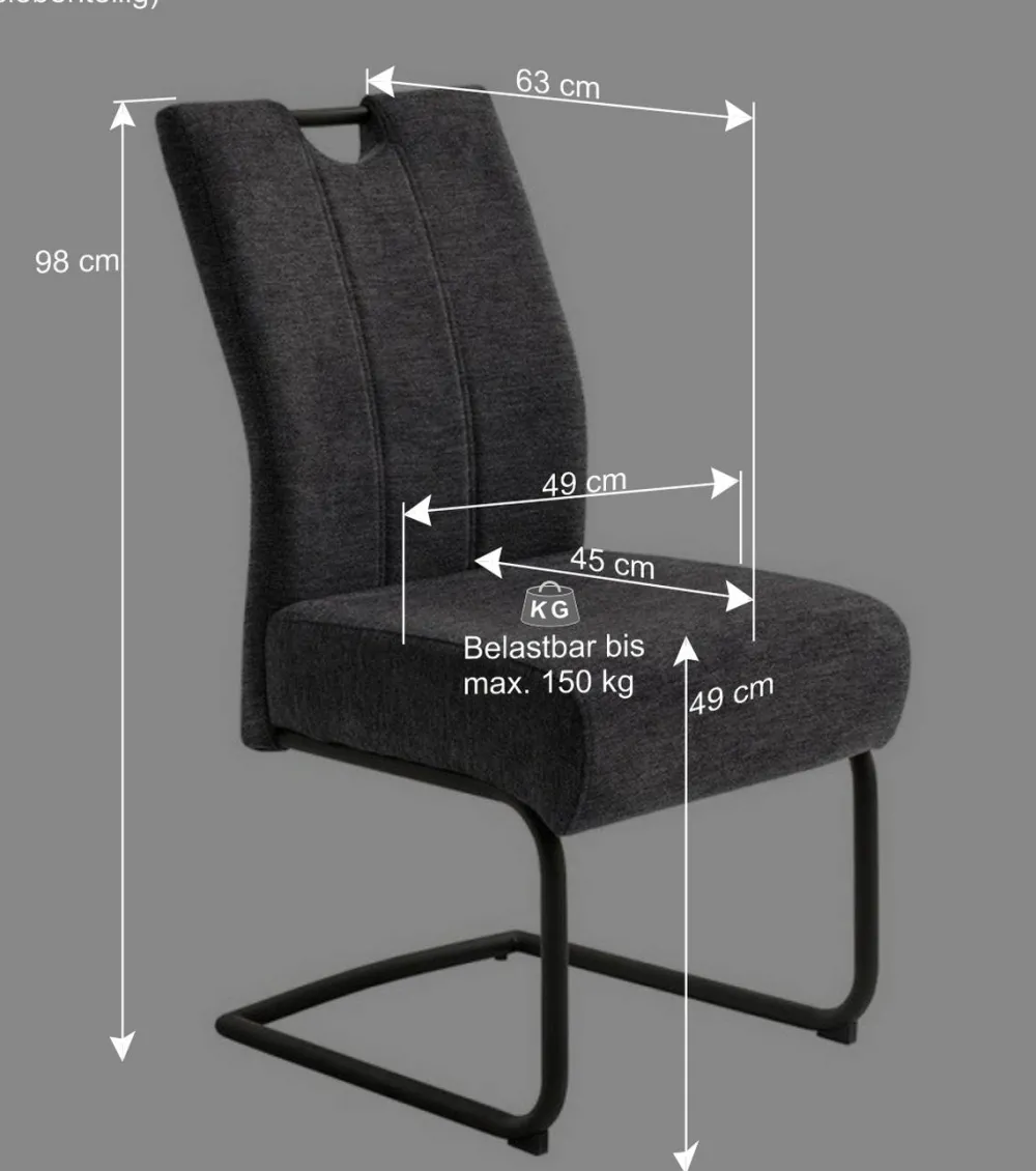 - Sitzhöhe: 49 cm, Sitztiefe: 45 cm, Sitzbreite: 49 cm