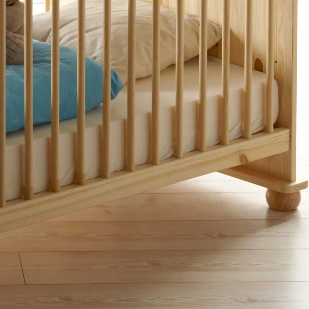 Das Babybett „Cilian“ wird komplett aus Massivholz Kiefer gefertigt und besticht durch seine robusten und pflegeleichten Oberflächen in Klar lackiert. Die stabilen Füße in Kugelform sorgen nicht nur für einen sicheren Stand, sondern runden auch die charmante Erscheinung dieses Möbelstücks gelungen ab.