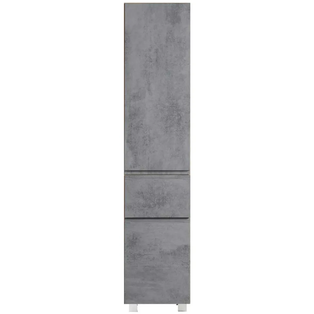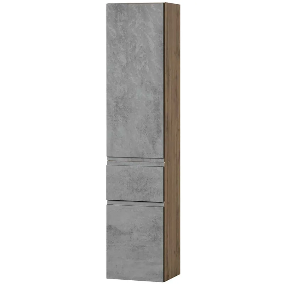 - Trendstarker Bad Hochschrank in Betongrau und Wildeichefarben