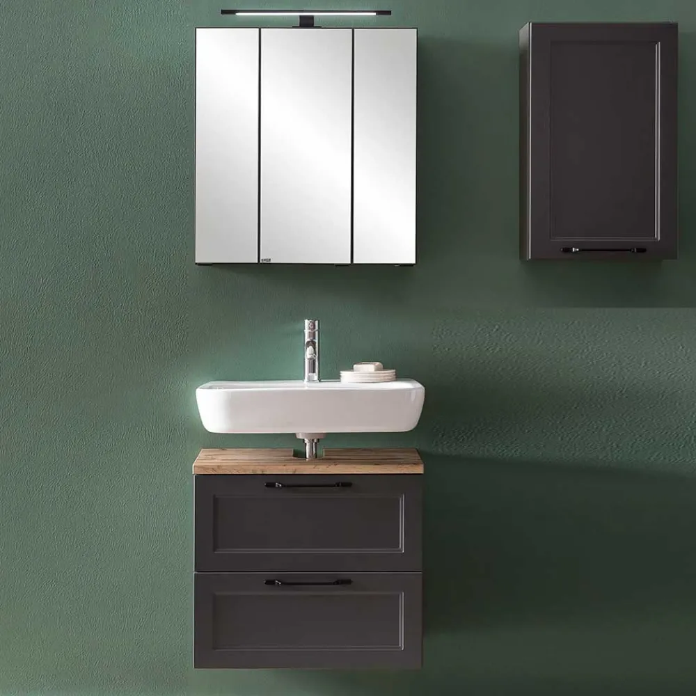 - Attraktive Badmöbel in Dunkelgrau und Wildeichefarben