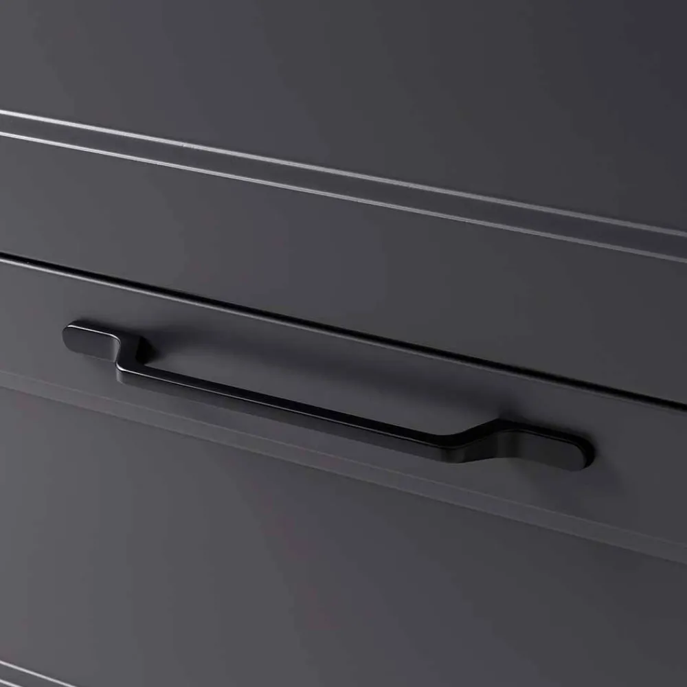 - Kleine Metallgriffe in Schwarz an der Unterkante