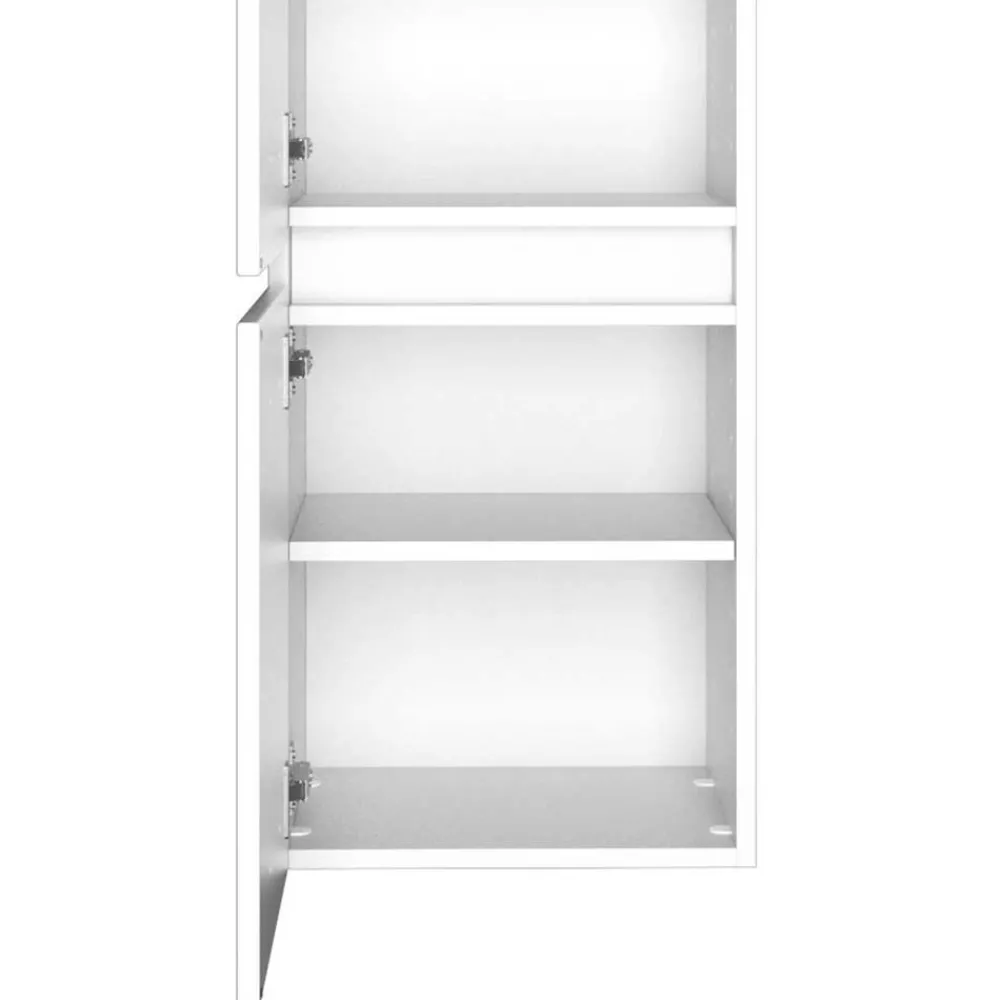 Mit Maßen von 40x135x35 cm ist der Midischrank ein wahres Stauraumwunder. Die zwei Türen verbergen praktische Einlegeböden, die für Ordnung und Übersichtlichkeit sorgen. Ob hängend oder stehend, dieser Schrank passt sich perfekt Ihren Bedürfnissen und Ihrem Raum an.