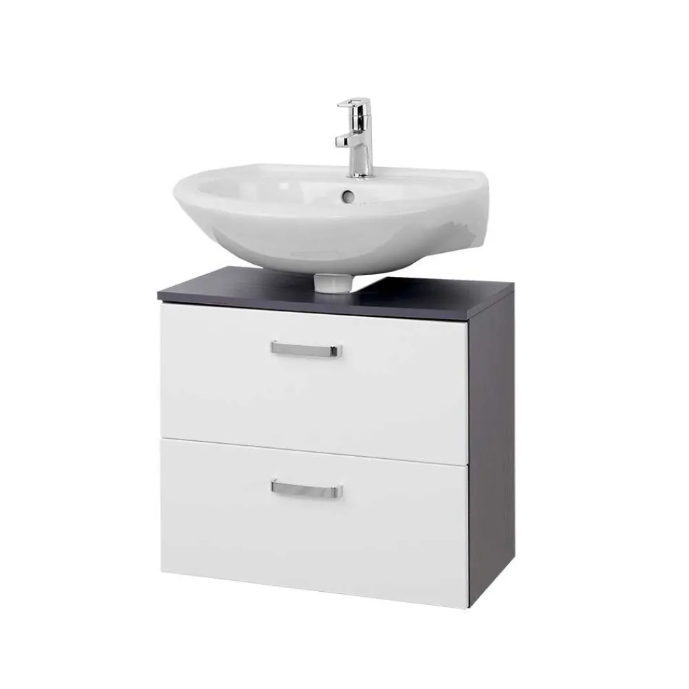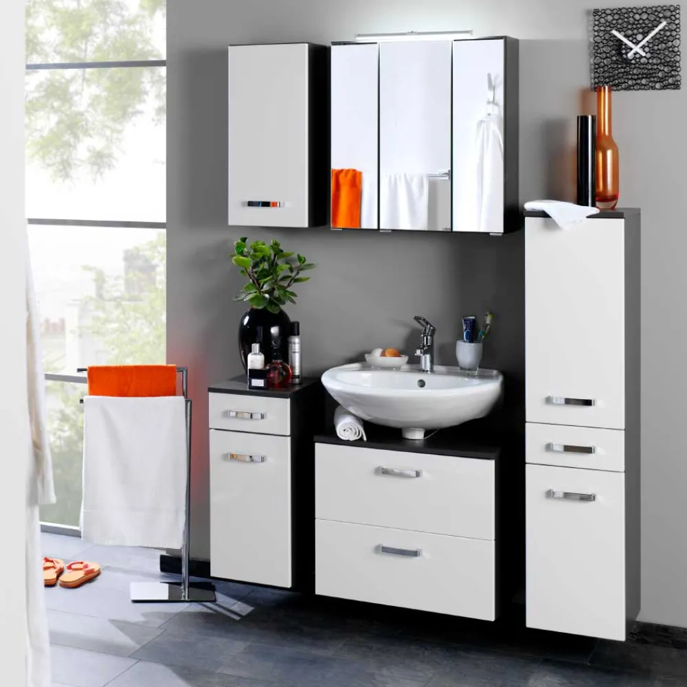 - Ansprechendes Badmöbelset in Graphitgrau und Weiß