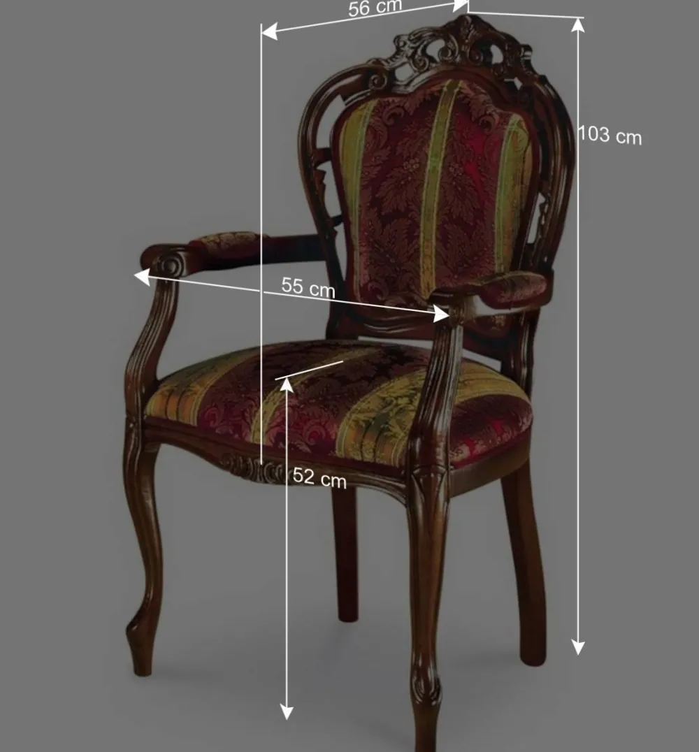 Genießen Sie die exquisite Eleganz, die der Armlehnstuhl „Magari“ Ihrem Zuhause verleiht. Inspiriert durch den opulenten Barockstil, der für seine prächtigen Formen und luxuriösen Details berühmt ist, verspricht dieser Stuhl, jedes Raumambiente majestätisch zu bereichern. Barockmöbel sind bekannt für ihre geschwungenen Linien, reichhaltigen Verzierungen und die Betonung auf prunkvoller Ästhetik, was auch im Design von „Magari“ zum Ausdruck kommt.