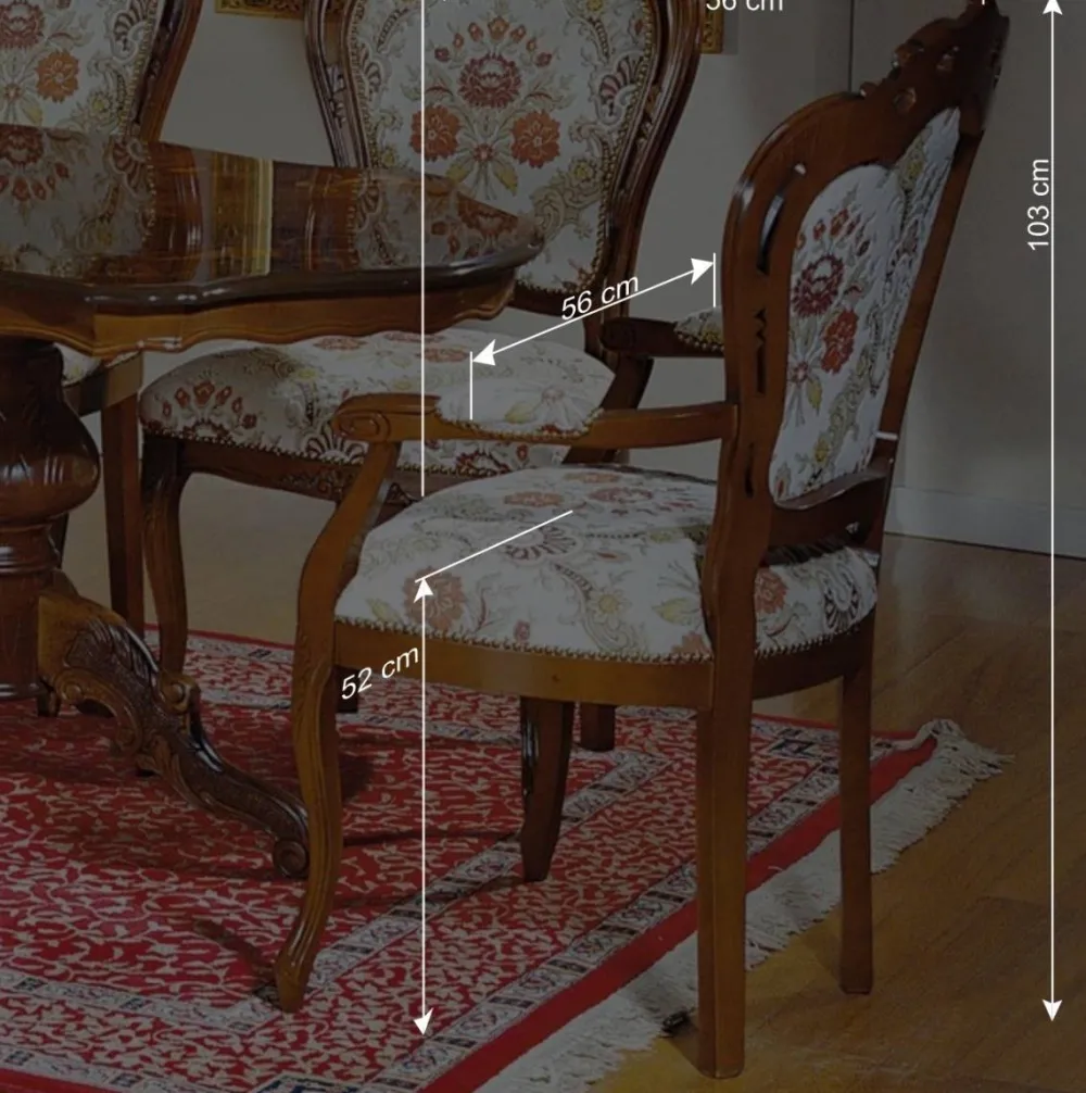 Erleben Sie mit dem Armlehnstuhl „Magari“ die perfekte Symbiose aus stilvoller Eleganz und unvergleichlichem Komfort. Inspiriert vom opulenten Barockstil, bekannt für seine detailreiche und üppige Formensprache, verkörpert dieses Möbelstück eine Zeit der künstlerischen Extravaganz und sozialen Repräsentation. Jedes Detail des Stuhls, von den sorgfältig geschnitzten Ornamenten bis hin zum nussbaumfarben gebeizten und lackierten Finish, spiegelt die Pracht und Präsenz des Barock wider.