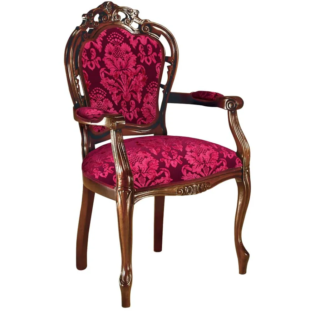 - Prunkvoller Armlehnstuhl in Dunkelrot und Nussbaumfarben
