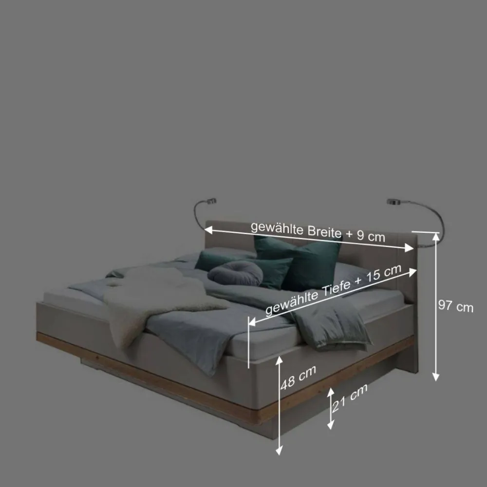 - Modisches Bett in Beige und Eiche Bianco