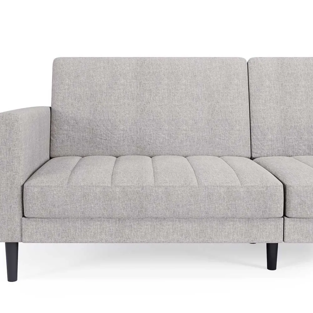 Mit der Funktionscouch „Logion“ verwandeln Sie Ihr Wohnzimmer im Handumdrehen in einen gemütlichen Übernachtungsplatz. Die zweiteilig ausgeführte Rückenlehne lässt sich einzeln manuell klappen, um eine komfortable Liegefläche von ca. 180×112 cm zu schaffen. Ideal für spontane Übernachtungsgäste oder gemütliche Filmabende zu Hause.
