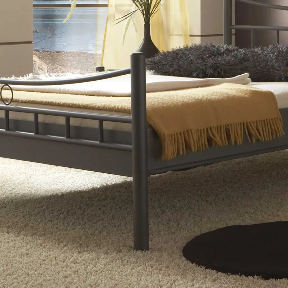 „Rosanna“ besticht durch ein modernes Design, das Eleganz und Funktionalität nahtlos miteinander verbindet. Das Bettgestell aus Metall, pulverbeschichtet in einem tiefen Dunkelgrau, verspricht nicht nur eine kratzfeste Oberfläche, sondern setzt auch ein markantes visuelles Statement in Ihrem Schlafraum. Die erstklassige Qualität und sorgfältige Verarbeitung garantieren eine lange Lebensdauer und machen „Rosanna“ zum Mittelpunkt des Raumes.