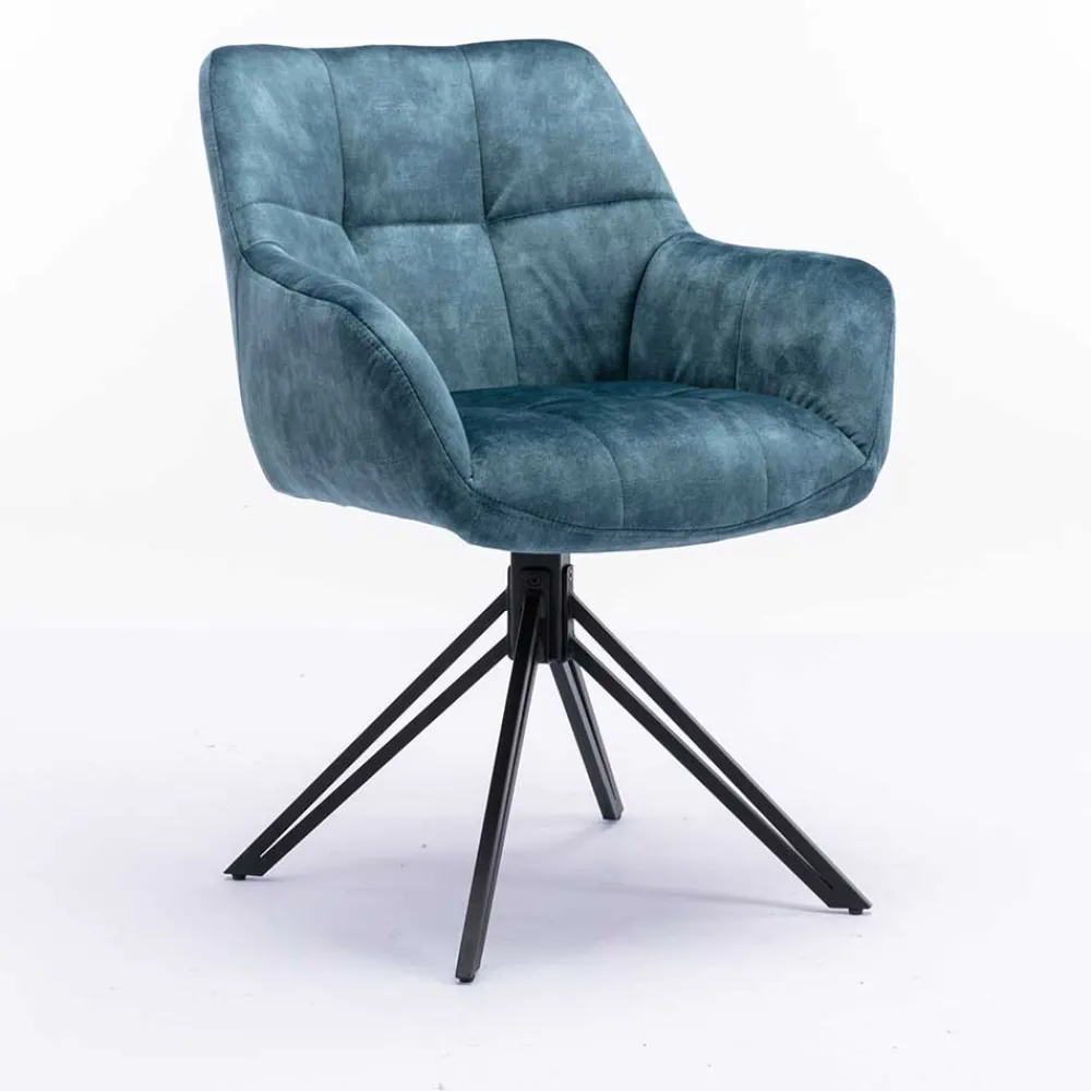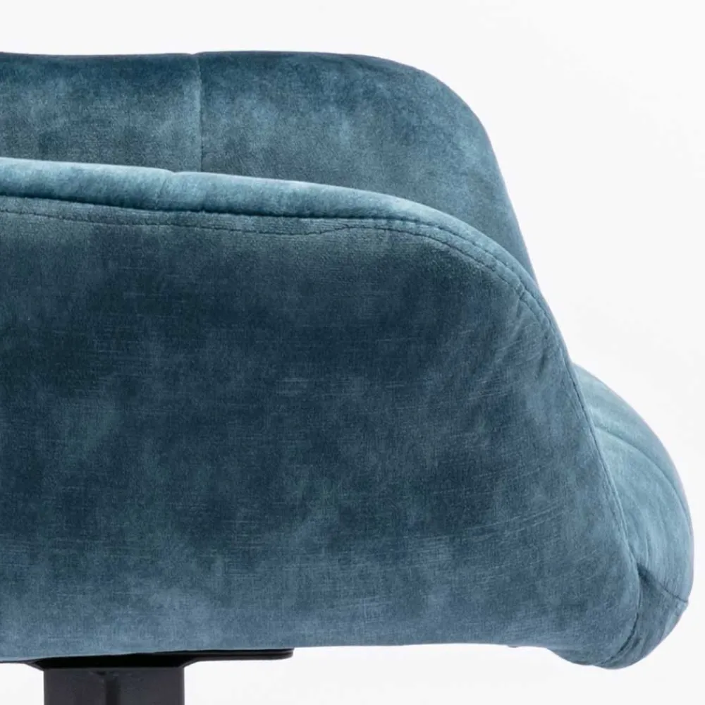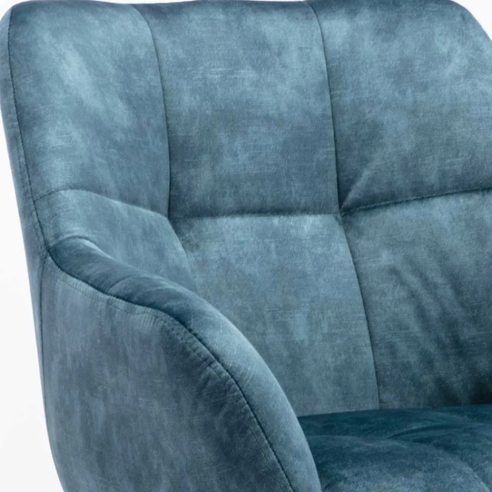 Eingehüllt in weichen, blauen Veloursbezug, besticht der „Paleara“ durch seine Vintage-Optik, die Ihrem Raum eine edle Ausstrahlung verleiht. Velours, bekannt für seine Langlebigkeit und leicht zu pflegende Oberfläche, bietet nicht nur eine luxuriöse Haptik, sondern ist auch strapazierfähig genug, um den Anforderungen des täglichen Gebrauchs standzuhalten. Die 100 % Polyesterzusammensetzung garantiert dabei eine beeindruckende Widerstandsfähigkeit gegen Abnutzung, wodurch Ihr Stuhl auch nach Jahren des Gebrauchs wie neu aussieht.
