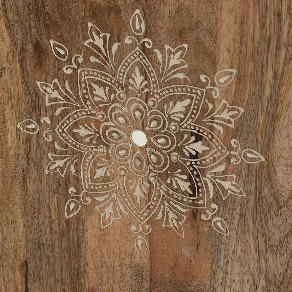 Verleihen Sie Ihrem Raum einen einzigartigen Charme mit der Kombi Kommode „Marike“. Mit ihrem stilvollen, orientalischen Design und der Kombination aus natürlichen Mangoholzfarben und schwarzem Finish wird sie garantiert zum Blickfang in jedem Raum. Die kunstvoll handbemalten Mandala-Motive auf der Front der Schubladen verleihen der Kommode eine ganz besondere Note. Jedes Stück ist ein Unikat, da Farbe und Struktur in Handarbeit variieren können. So erhalten Sie ein Möbelstück, das es in dieser Form kein zweites Mal gibt – perfekt für Liebhaber individueller Einrichtung.