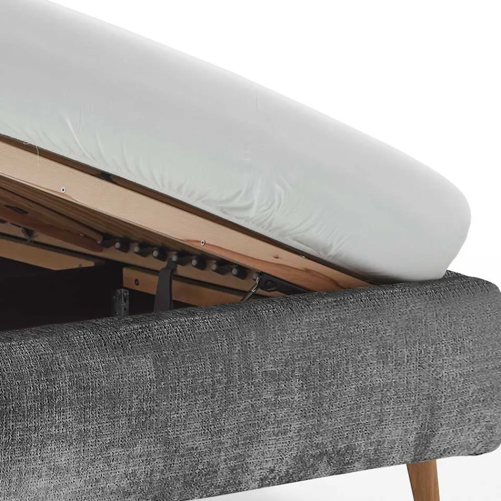 Das Highlight des Polsterbettes „Seen“ ist sicherlich der belüftete Bettkasten. Dieser bietet Ihnen nicht nur zusätzlichen Stauraum, sondern lässt sich durch seitlich angebrachte Gasdruckfedern kinderleicht hochklappen. Gasdruckfedern sorgen für ein sanftes und sicheres Öffnen sowie Schließen des Bettkastens und garantieren somit eine einfache Handhabung.