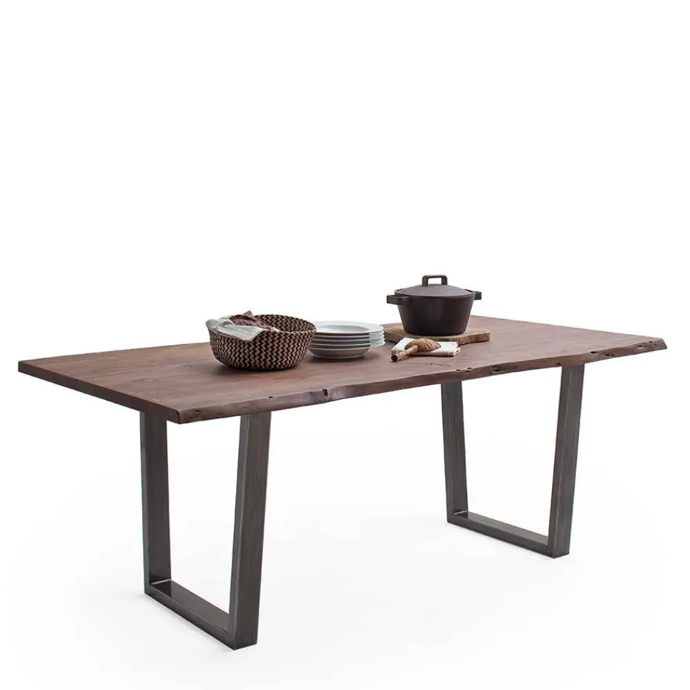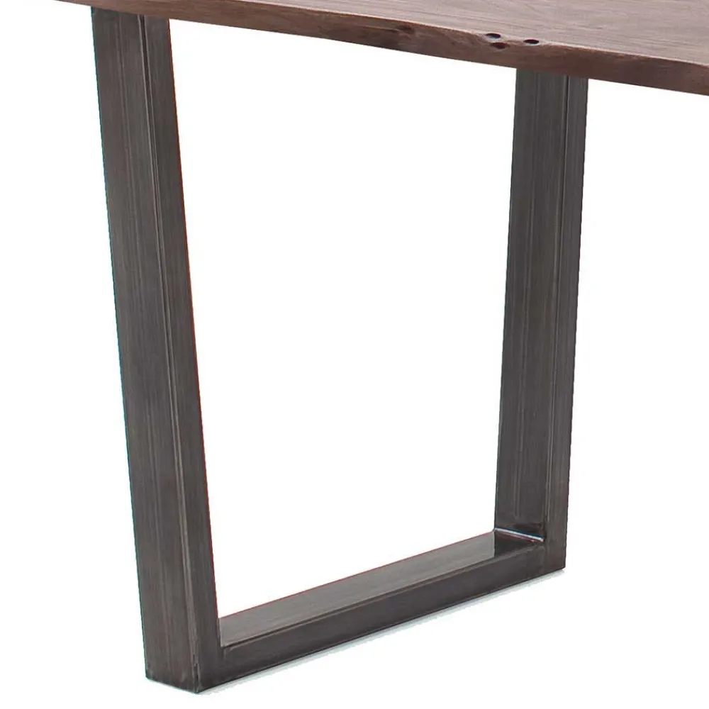 Der Naturkanten-Esstisch „Lausio“ vereint geradlinige Modernität mit rustikaler Natürlichkeit und wird so zu einem Blickfang in jedem gemütlichen Essbereich. Die warme Farbgebung in Walnuss Braun und Altsilber sorgt für ein einladendes Ambiente und bringt zeitlosen Charme in Ihr Zuhause.