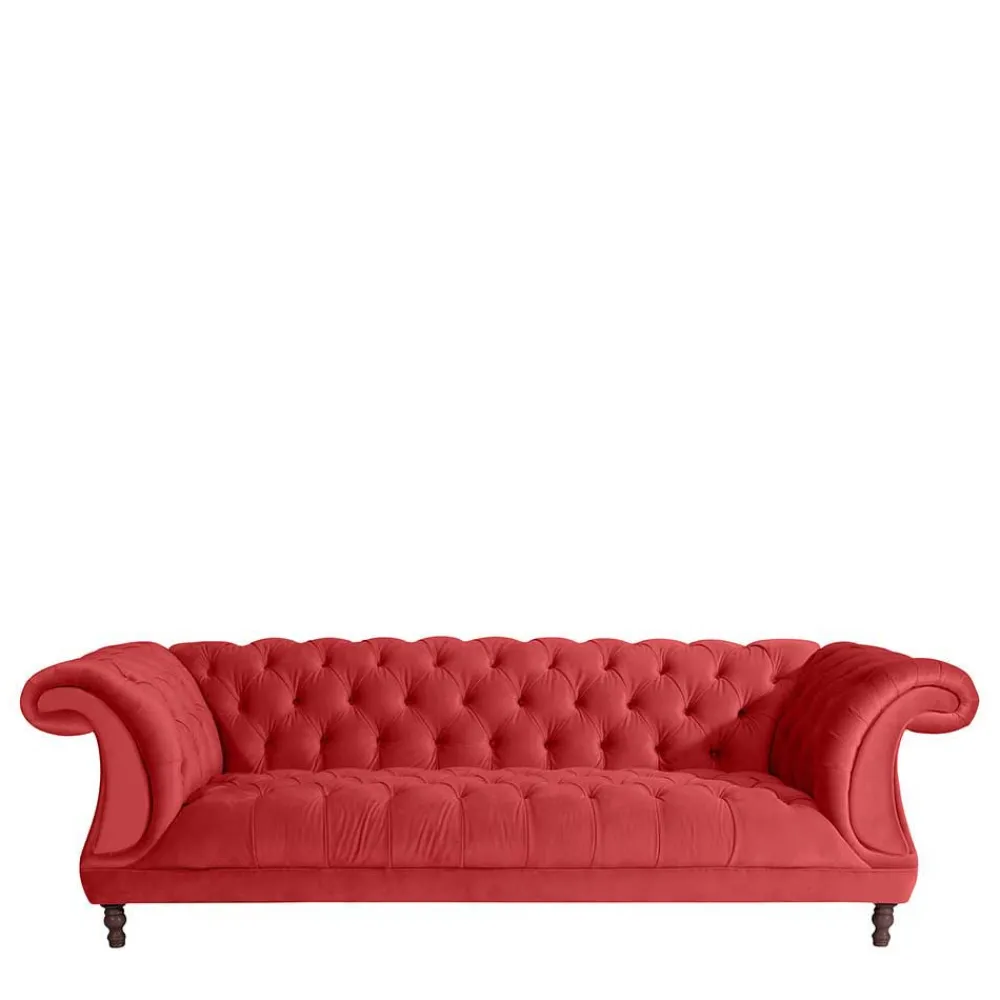 Überzogen mit pflegeleichtem Samtvelours in strahlendem Rot, bietet „Rosanna“ nicht nur visuellen Genuss, sondern ist auch außerordentlich strapazierfähig – getestet auf 100.000 Scheuertouren nach Martindale. Die Lichtechtheit von 5 garantiert, dass die leuchtende Farbe auch bei Sonneneinstrahlung erhalten bleibt. Kunstvoll gedrechselte Füße in Nussbaumfarben und die aufwendige Knopfheftung an Rücken, Sitz und Armlehnen vollenden das Design.