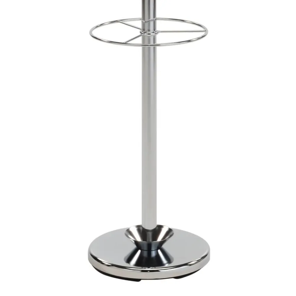Ordnung trifft auf Eleganz: Der Garderobenständer „Linz“ überzeugt mit seinem stilvollen Chrom-Finish und funktionaler Raffinesse. Seine glänzend verchromte Oberfläche verleiht Ihrem Eingangsbereich oder Büro eine moderne Note, während die durchdachte Ausstattung für maximale Alltagstauglichkeit sorgt.