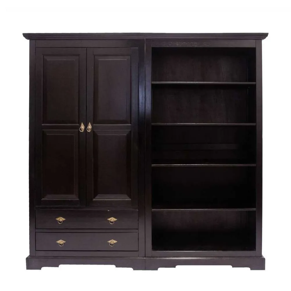 Die Büro-Kombination „Islando“ kombiniert einen Aktenschrank und ein Bücherregal und vereint Tradition und Funktionalität im beeindruckenden Kolonialstil. Entstanden in Zeiten der europäischen Kolonialherrschaft, transportiert dieser Stil ein Gefühl von Abenteuer, Exotik und weltmännischer Eleganz.