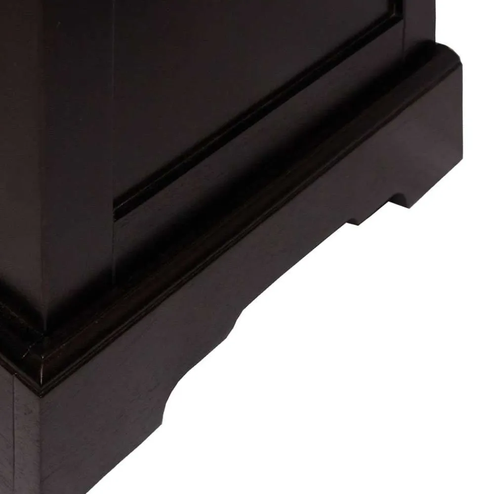 Sowohl der Aktenschrank als auch das Bücherregal beeindrucken mit exzellenter Qualität, Verarbeitung und aufwendigen Verzierungen. Die Metall-Ringgriffe in Messingfarben runden das Bild perfekt ab und fügen eine zusätzliche Schicht von Klasse und Eleganz hinzu.