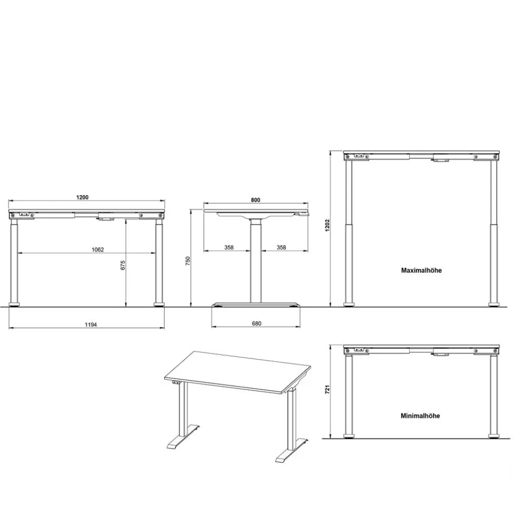 - Per Knopfdruck elektrisch höhenverstellbar von 72-120 cm