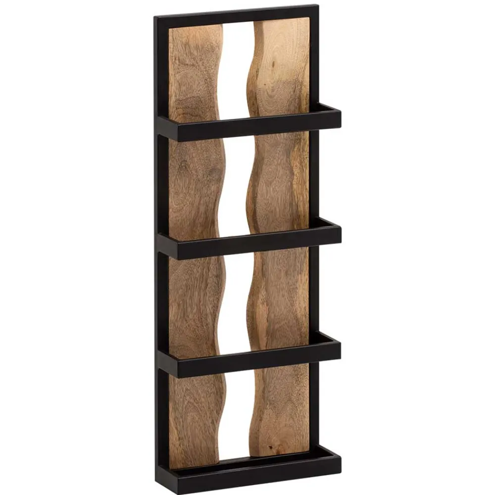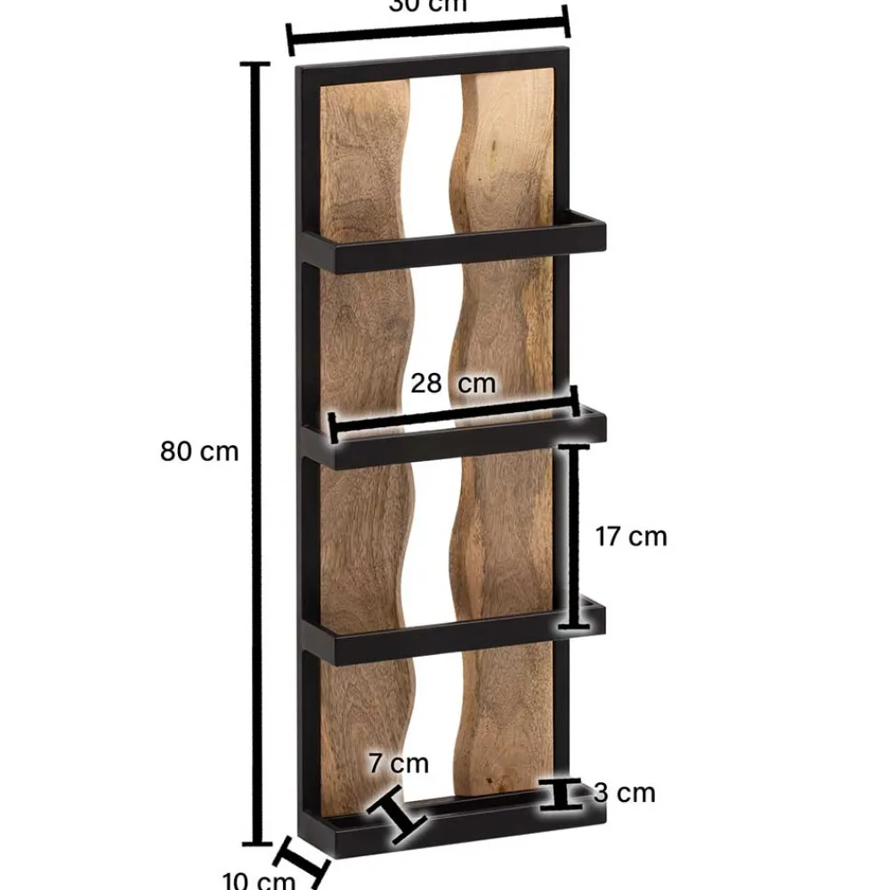 - Das Wandregal überzeugt in Schwarz und Mangoholz Naturfarben, passend zum Industry und Loft Stil