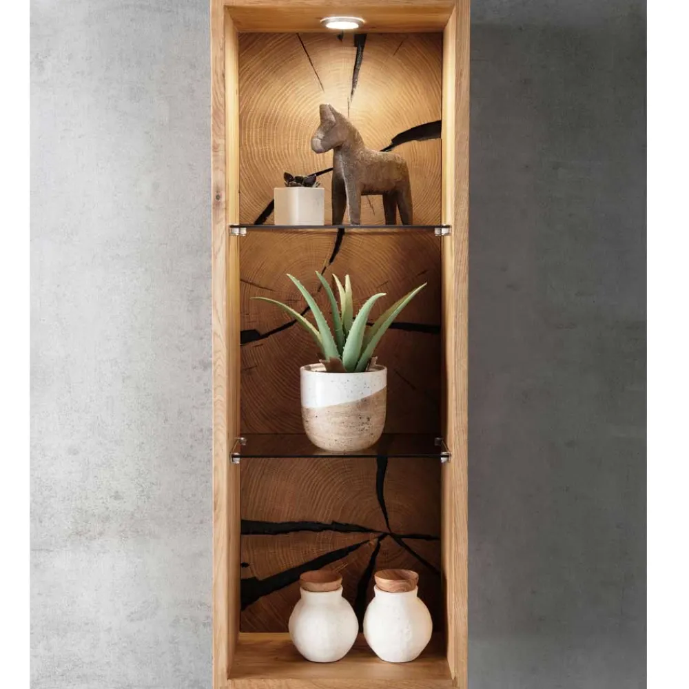 Das Regal „Acapella“ ist komplett aus massiver Wildeiche gefertigt, einem Holz, das für seine Dauerhaftigkeit und seinen edlen Charakter geschätzt wird. Wildeiche bietet eine außergewöhnliche Festigkeit und eine beeindruckende Langlebigkeit, die es ideal für die Herstellung von Möbeln macht, die Generationen überdauern sollen. Die natürliche Maserung der Wildeiche bringt Wärme und Individualität in Ihr Zuhause, wobei jedes Stück durch seine einzigartigen Holzmerkmale zu einem wahren Unikat wird.