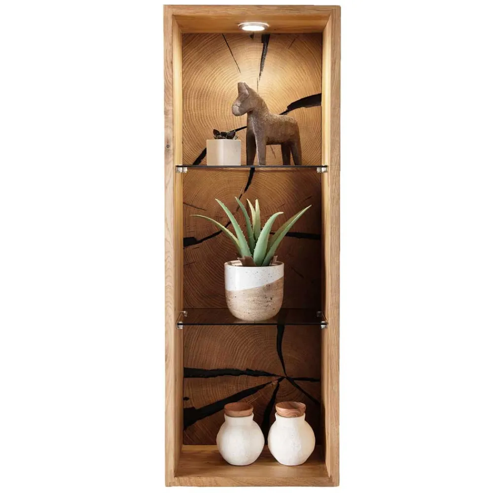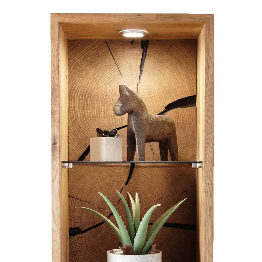 Für zusätzliche Funktionalität kann das Regal „Acapella“ mit einer LED-Beleuchtung ausgestattet werden. Diese Option enthält einen Touchsensor, mit dem Sie die Beleuchtung einfach steuern können. Die LED-Lichter sorgen für eine subtile Beleuchtung, die die Schönheit der ausgestellten Objekte hervorhebt und gleichzeitig energieeffizient ist.